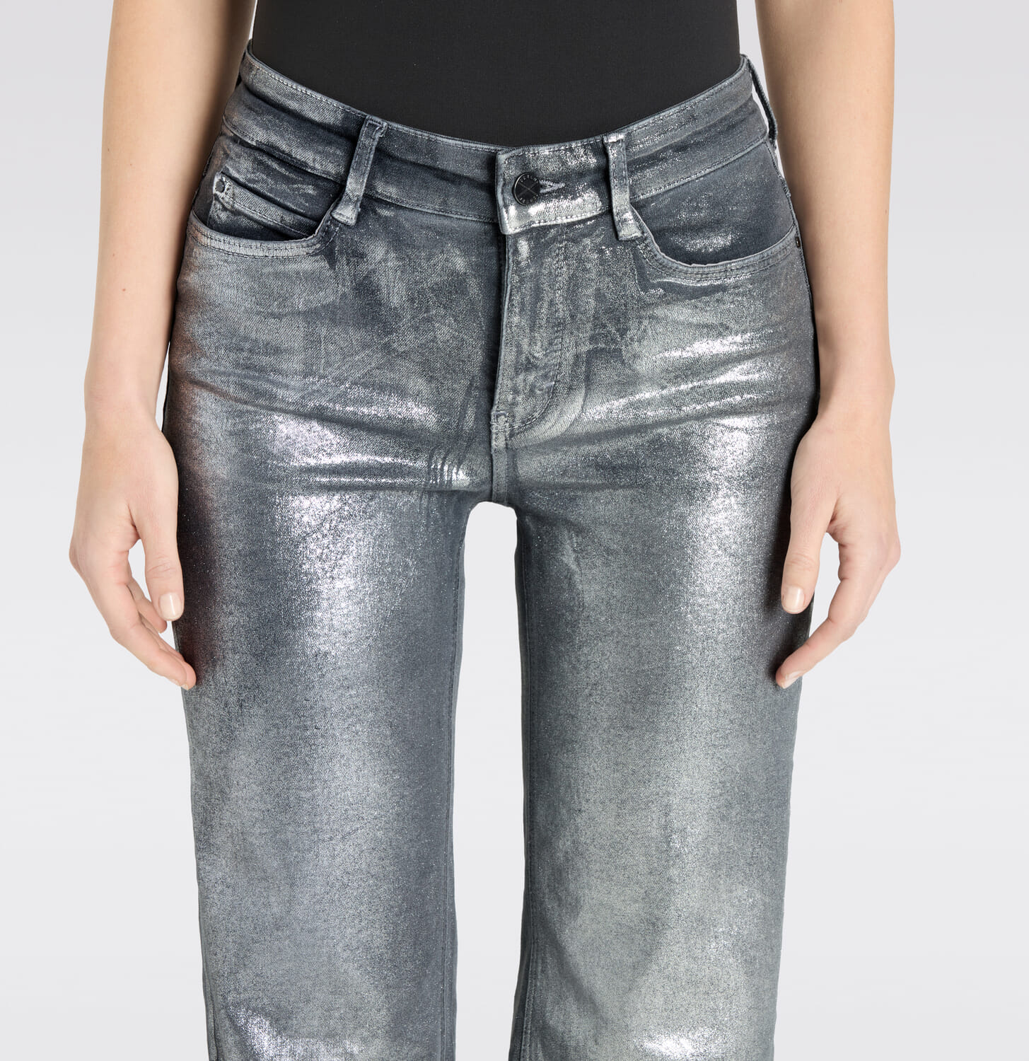 Jeans van Mac met een punk stijl en normale taille. Deze dames jeans heeft zowel voor- als achterzakken en een knoop- en ritssluiting. De flared pijpen geven een speelse draai aan elke outfit en maken deze jeans perfect voor een statement look.