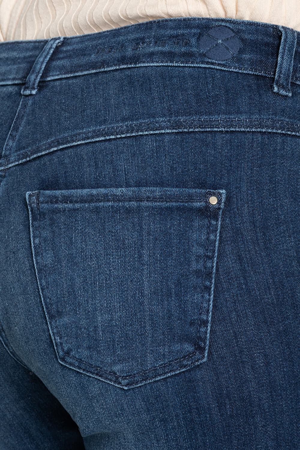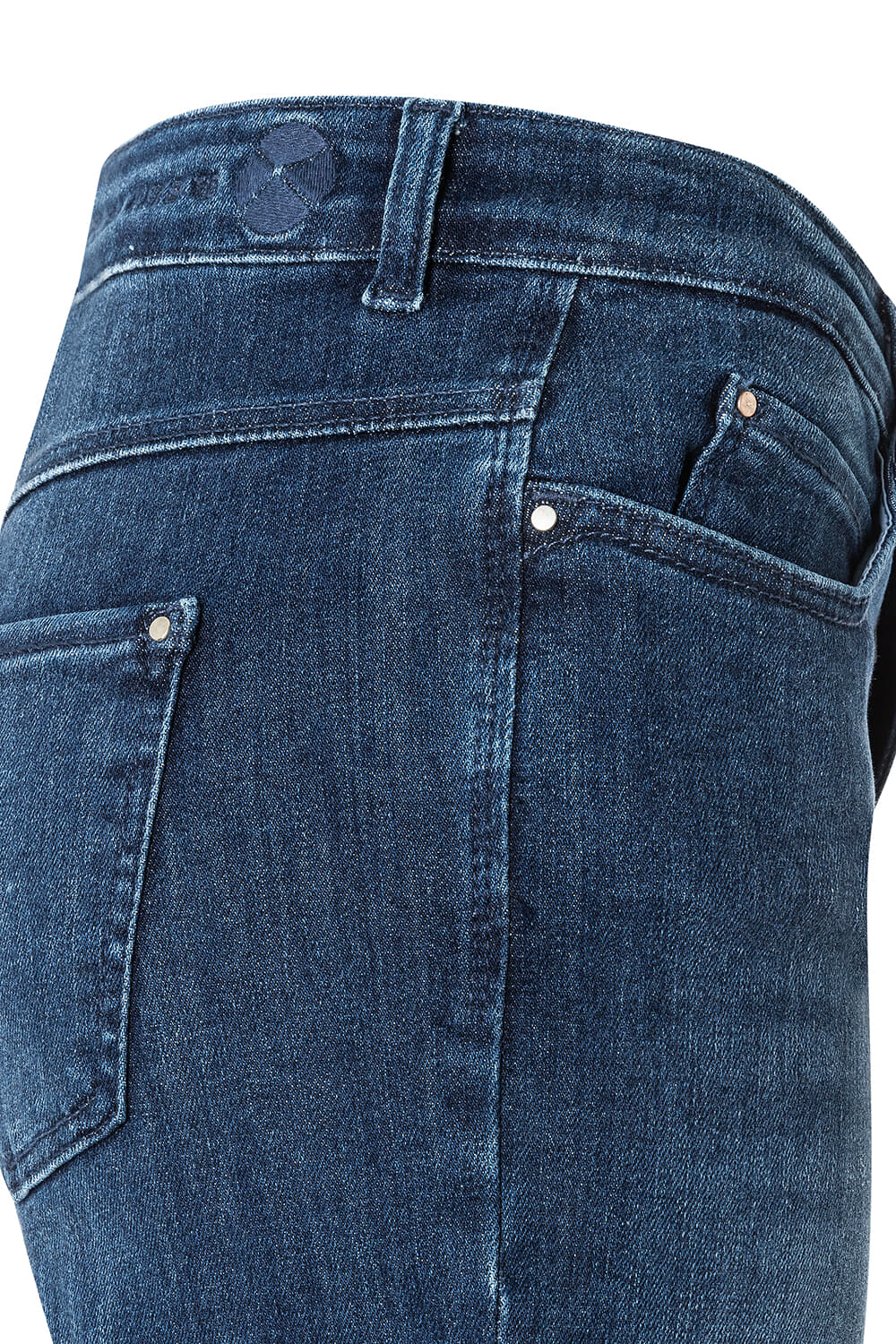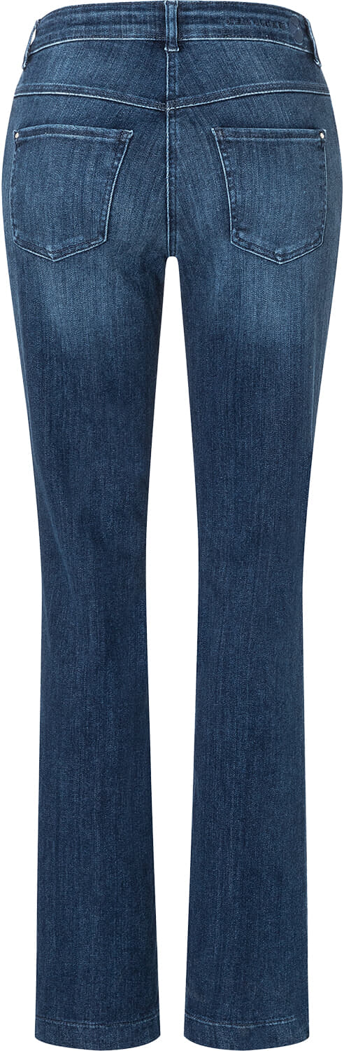 Damesjeans van Mac in donkerblauw denim met subtiele wassing. Slimfit pasvorm met normale taille, 5 zakken, knoop en ritssluiting. Bootcut, flared pijp geeft ruimte bij de enkel en valt mooi over sneakers of laarzen. Effen ontwerp voor een casual, veelzijdige outfit.