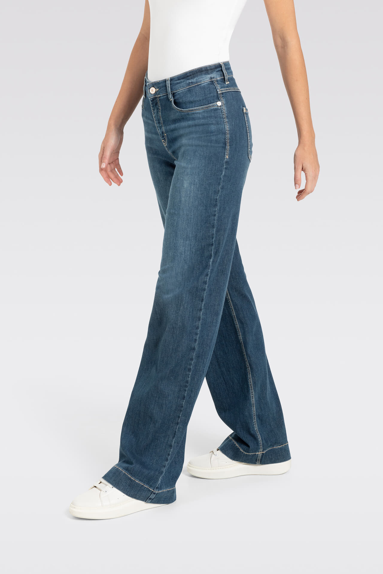 Jeans van Mac met een relaxte pasvorm en wijde pijpen, ideaal voor een casual uitstraling. Deze jeans heeft een normale taille, voor- en achterzakken, en een knoop- en ritssluiting. De effen dames jeans biedt stijl en comfort voor elke dag.
