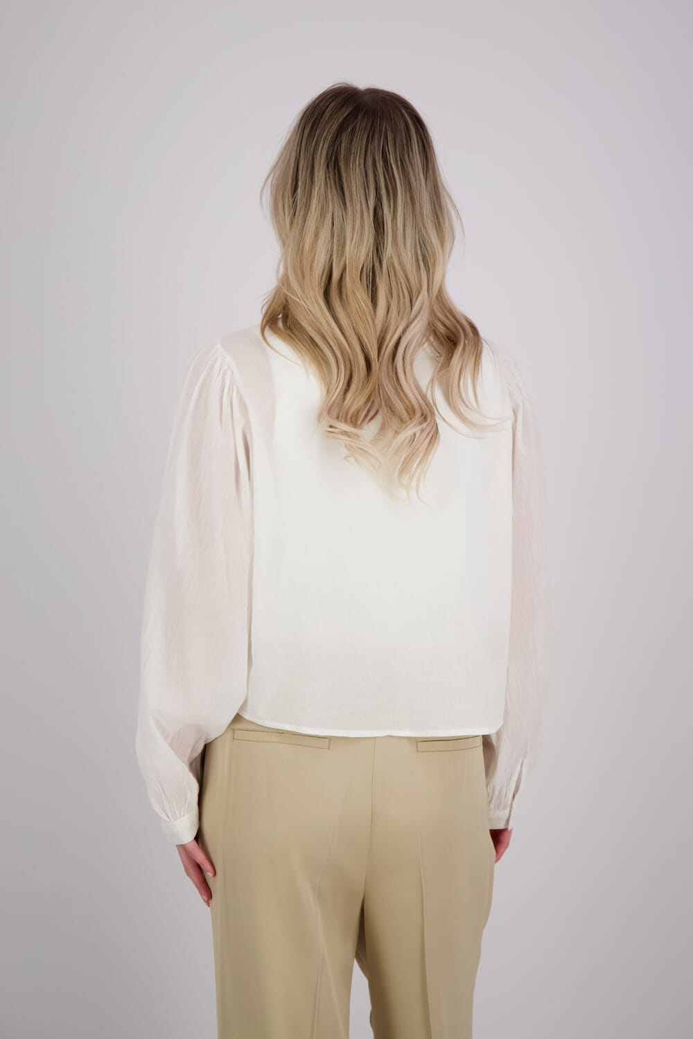 Blouse van Maison Hotel is een elegante blouse met lange mouwen en knoopsluiting bij de manchetten. Het effen patroon en de vrouwelijke stijl maken het ideaal voor casual gelegenheden. Een stijlvolle keuze voor wie op zoek is naar comfort en eenvoud.