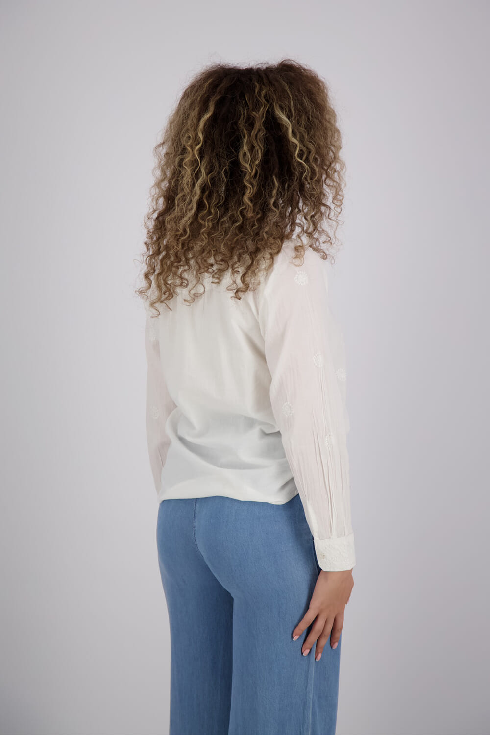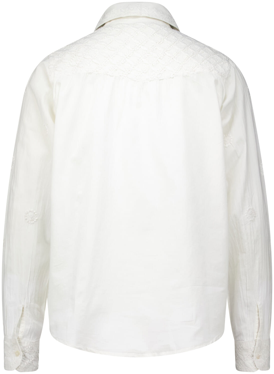 De blouse van Maison Hotel is een casual overhemd met lange mouwen en een button down kraag. Deze blouse heeft een subtiel bloemenpatroon en manchetten met knopen, wat zorgt voor een elegante uitstraling. De blouse is perfect voor elke gelegenheid.