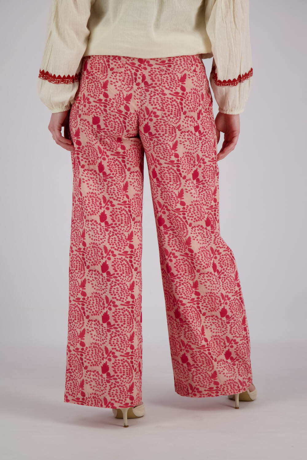 De Broek Peonia Lolo van Maison Hotel is een elegante lange broek met een bohemian uitstraling. Gekenmerkt door wijde pijpen en een opvallend bloemenpatroon, biedt deze broek comfort en stijl. De mouwen zijn afgewerkt met manchetten zonder knopen, wat een unieke flair toevoegt.