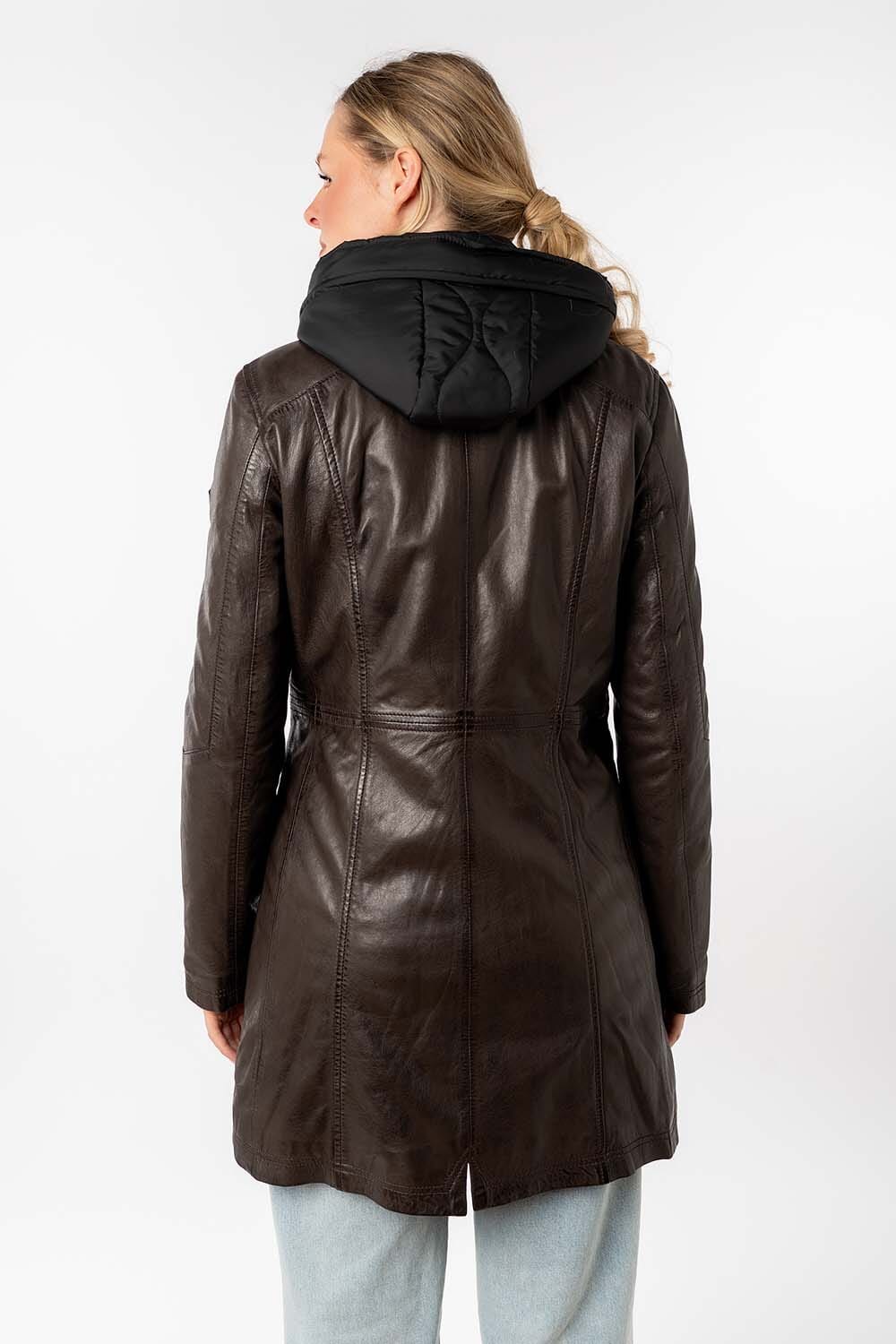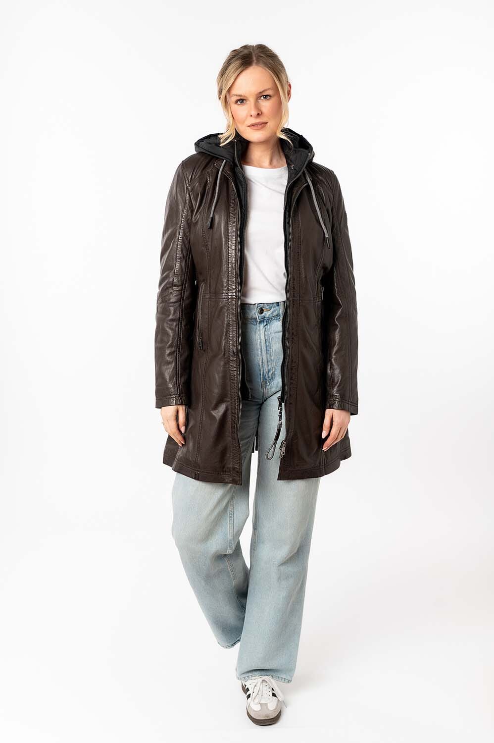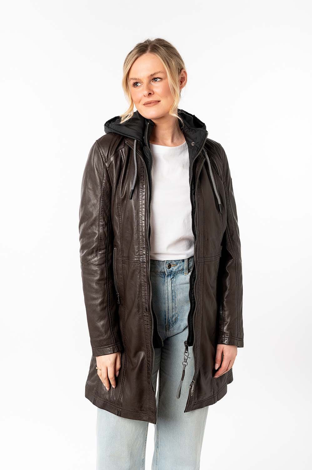 Jas Milene van Mauritius is een leren tussenjas met een verfijnde stijl. De capuchon en de 2-zijdige ritssluiting bieden praktische functionaliteit, terwijl de lange mouwen en het effen patroon zorgen voor een moderne uitstraling. Ideaal voor diverse gelegenheden.