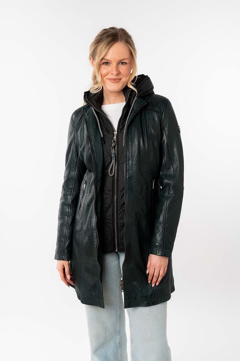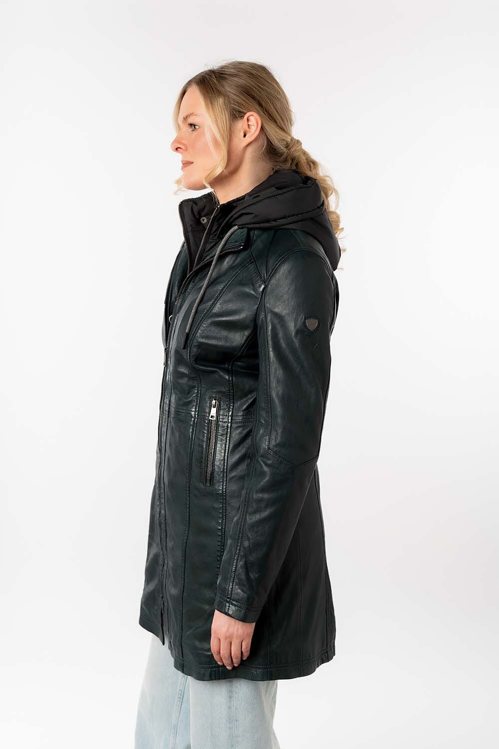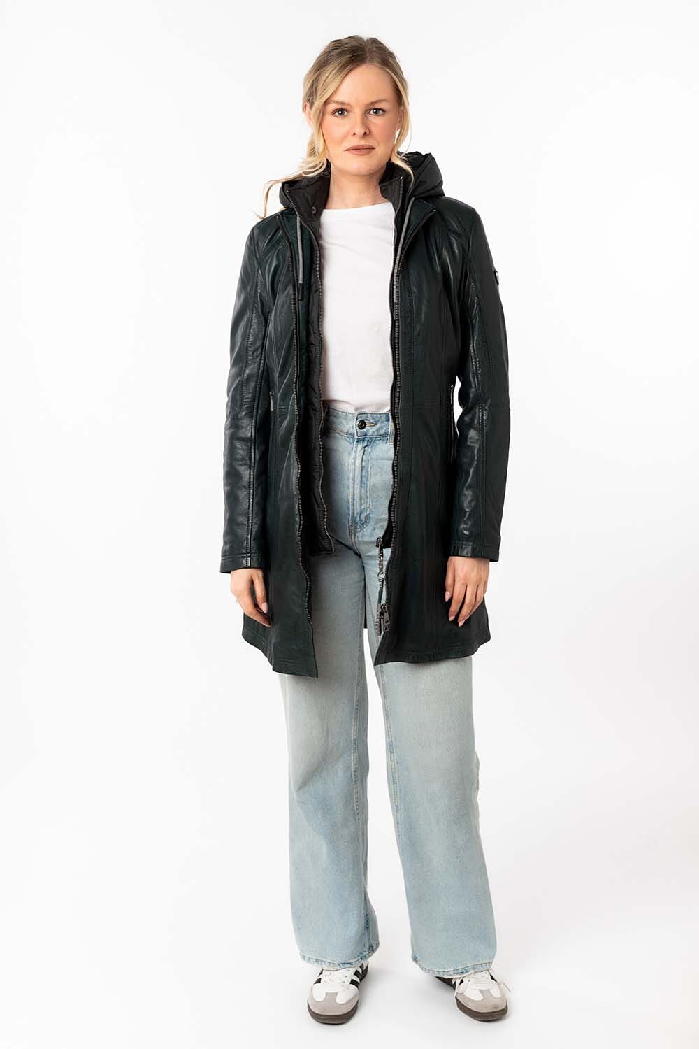 Jas Milene van Mauritius is een leren tussenjas met een verfijnde stijl. De capuchon en de 2-zijdige ritssluiting bieden praktische functionaliteit, terwijl de lange mouwen en het effen patroon zorgen voor een moderne uitstraling. Ideaal voor diverse gelegenheden.
