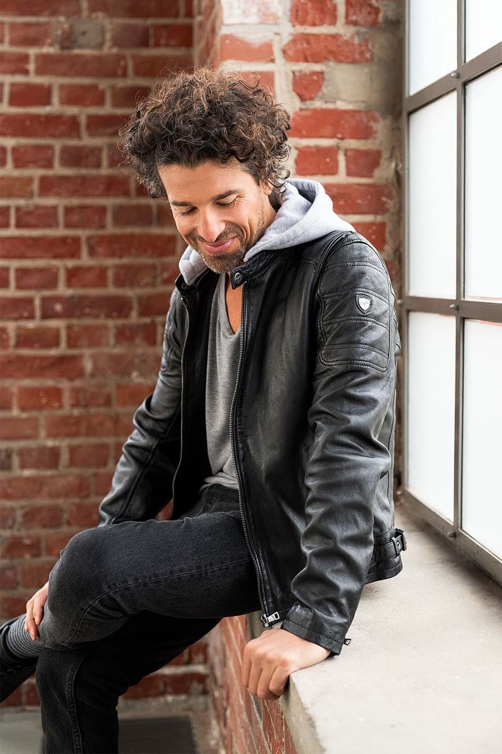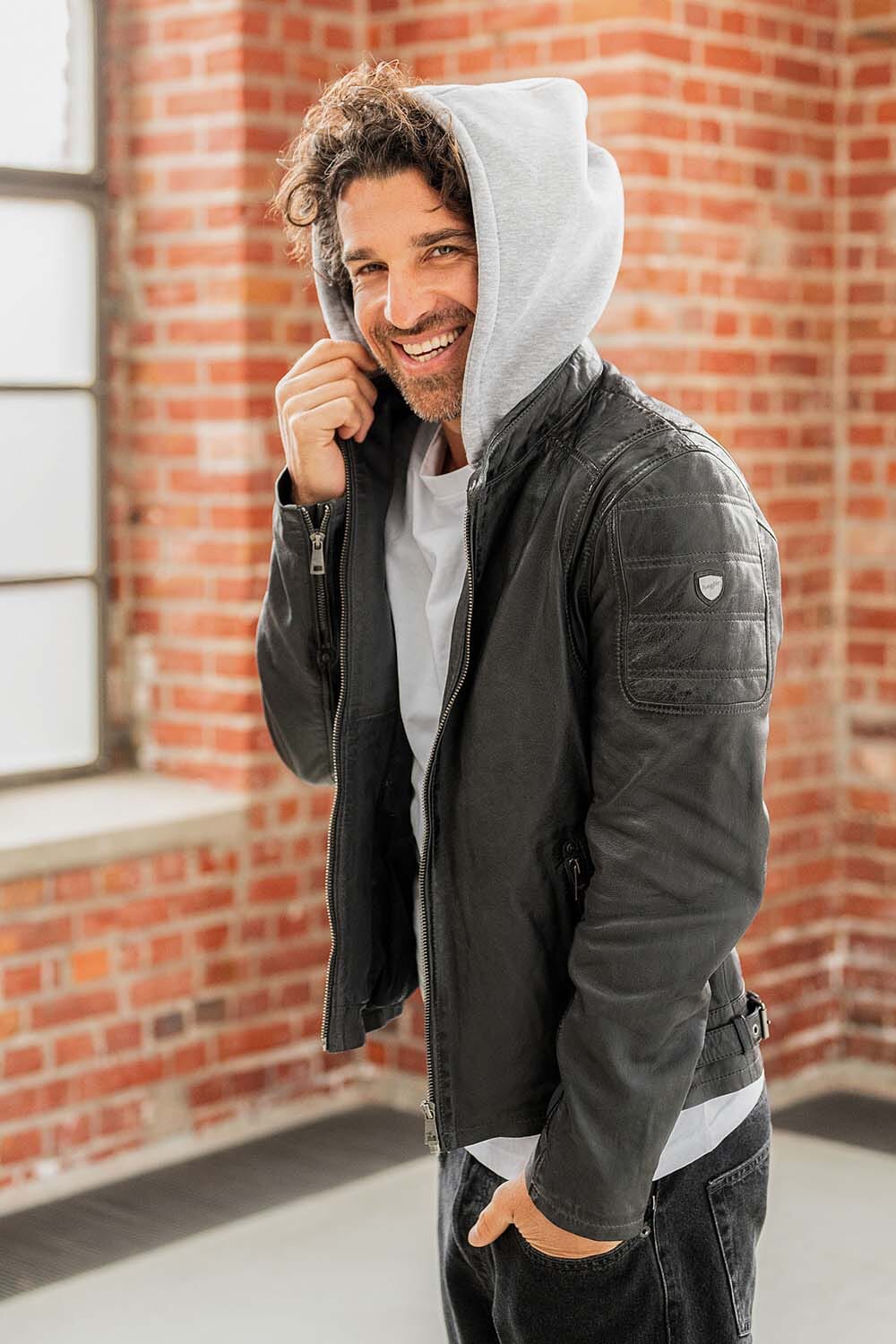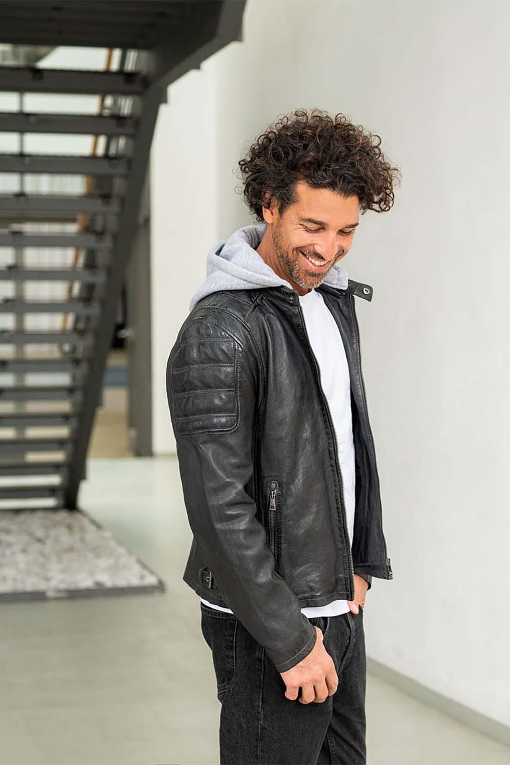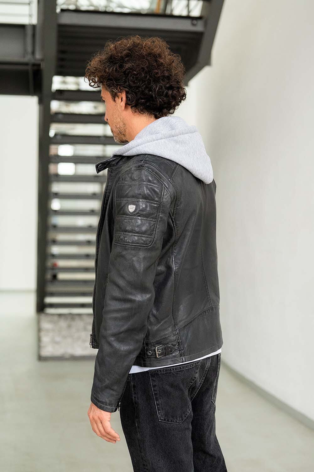 De jas Raylo Lakev van Mauritius combineert casual stijl met een moderne twist. Deze bomberjas heeft verstelbare gespen aan de zijkant, een capuchon, ritssluiting en lange mouwen. Ideaal voor dagelijks gebruik, biedt deze leren jas comfort en stijl, perfect voor een ontspannen, maar stijlvolle look.