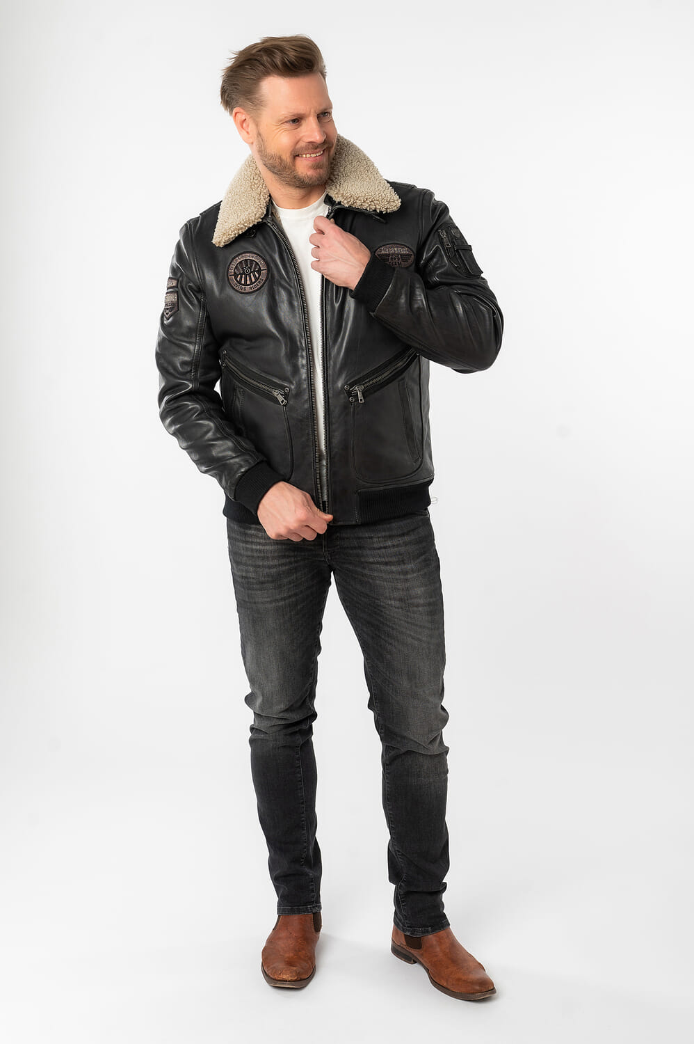 De Jas Starpilot van Mauritius is een casual leren bomberjas met een stijlvolle rits en warme voering. Deze jas valt op door zijn stoere patches en comfortabele fit. Perfect voor een modieuze uitstraling met een eigentijdse twist.