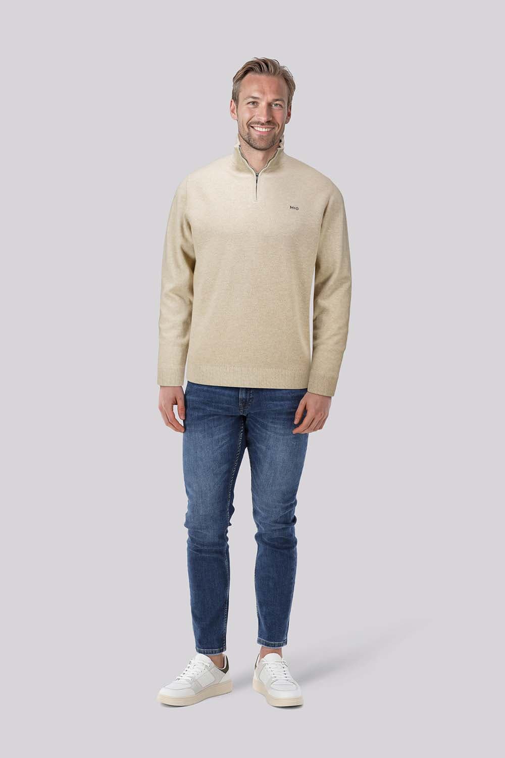 Deze half-zip trui is vervaardigd uit een hoogwaardige mix van 70% katoen en 30% merinowol, wat zorgt voor een zachte, comfortabele en luxueuze draagervaring. De trui heeft een regular fit, lange mouwen, een ribgebreide ritscol en ribgebreide manchetten. Op de borst bevindt zich een subtiel McGregor-logo. Een veelzijdig en stijlvol item dat zowel casual als netjes gedragen kan worden.