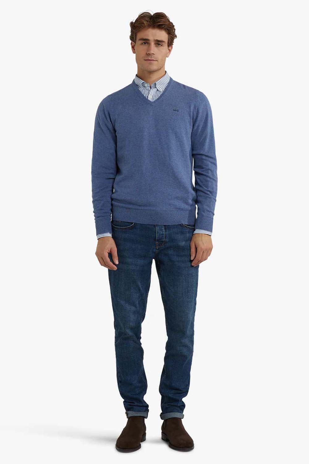 Deze trui is gemaakt van een hoogwaardige mix van katoen en merinowol, voor een zachte en comfortabele draagervaring. Het item heeft lange mouwen, een ribgebreide V-hals en ribgebreide manchetten. Op de borst bevindt zich een subtiel McGregor-logo. Een tijdloze en veelzijdige trui, geschikt voor zowel casual als smart-casual looks.