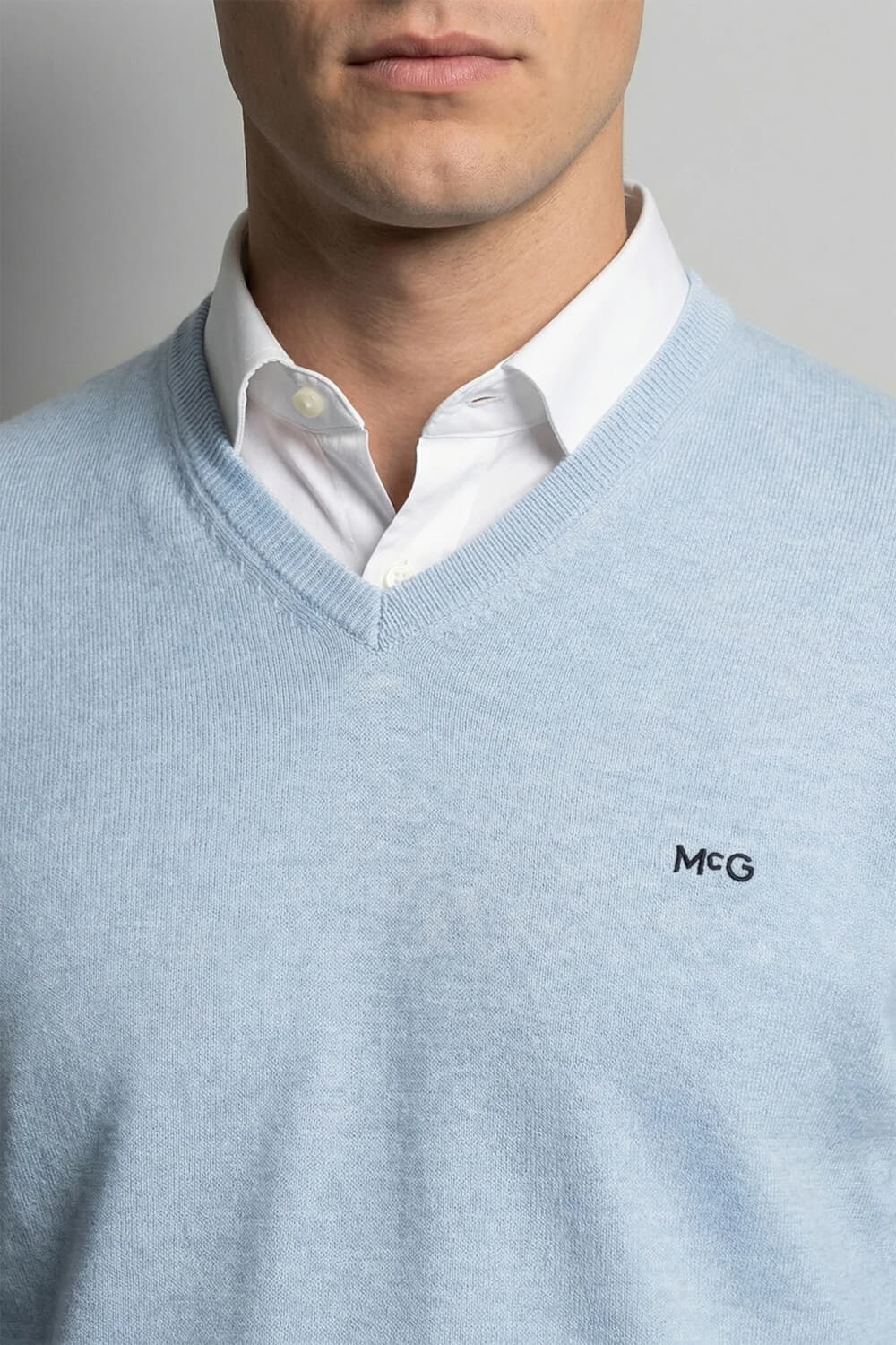 Trui v-neck van Mc Gregor is een trui met V-hals, regular pasvorm en lange mouwen met ribgebreide mouwboorden. Het effen, donkerblauwe ontwerp heeft een subtiel logo op de borst en past bij casual en nette momenten, in business en casual stijl.