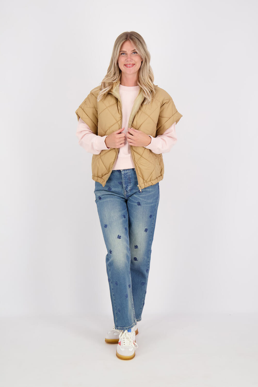De Bodywarmer Ivy van Mei-Li is een stijlvolle bodywarmer met een opstaande kraag en een 2-zijdige rits. De oversized pasvorm, effen patroon en het mouwloze ontwerp maken het een ideale tussenjas voor dagelijks gebruik. Perfect voor een casual en comfortabele look.