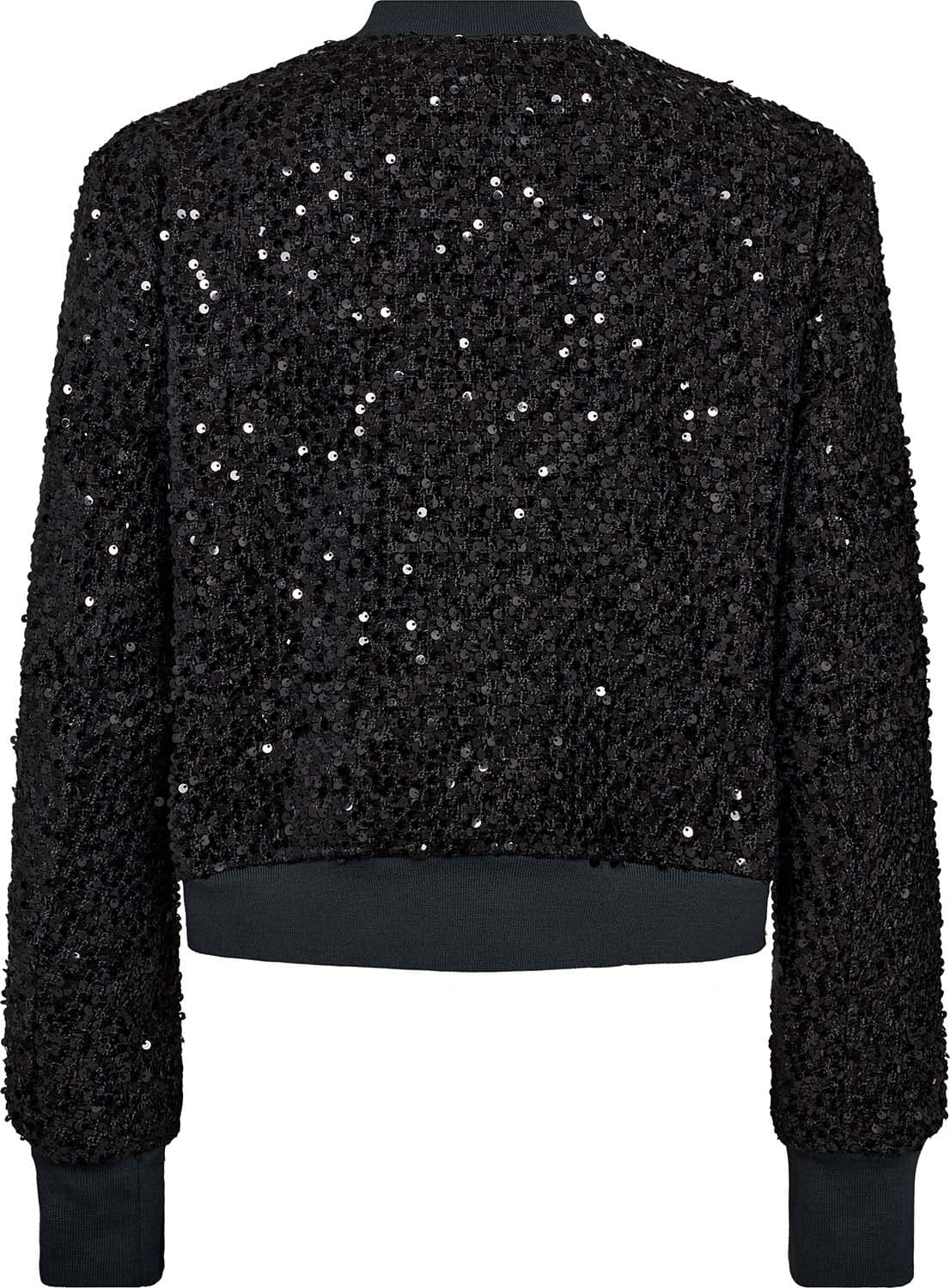 Bomberjasje Cate Lala van Mos Mosh is een trendy dames blazer, ideaal voor feestelijke gelegenheden. Met een opstaande kraag, rits en lange mouwen, biedt dit bomberjasje een stijlvolle uitstraling. De glinsterende details maken het een perfecte keuze voor een opvallende look.