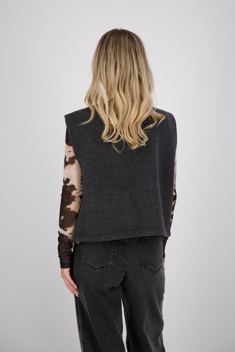Gilet Elise Loisa van Mos Mosh is een stijlvol dames gilet met een boxy fit en sportieve uitstraling. Uitgevoerd in een effen patroon, biedt het praktische zakken op de voorzijde en een handige ritssluiting, ideaal voor een casual gelegenheid.