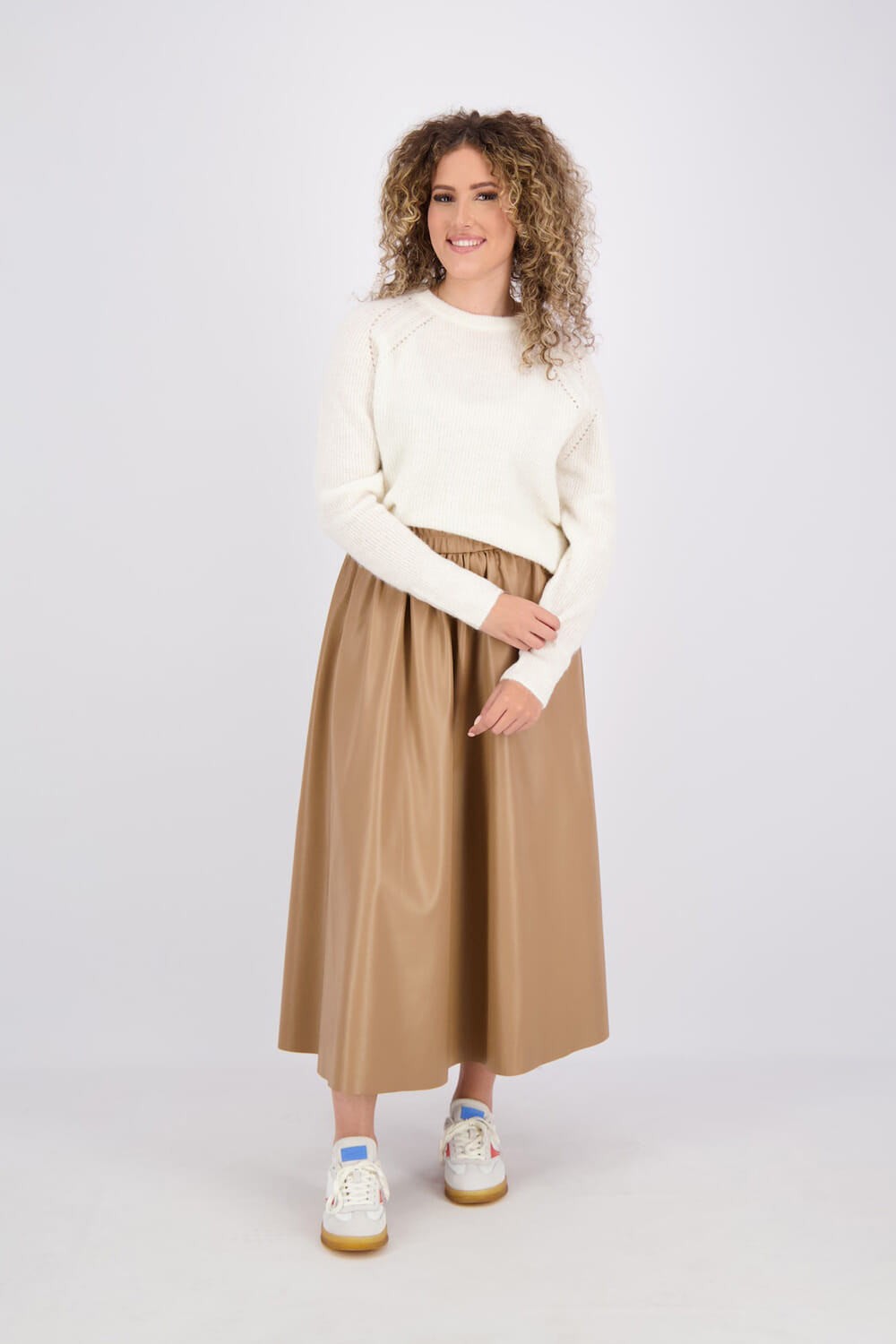 De Gebreide Trui Tammy Thora van Mos Mosh is een stijlvolle toevoeging aan elke garderobe. Met een minimalistisch design, een ronde hals en lange mouwen, biedt deze effen trui een comfortabele regular fit. Perfect voor een casual look.