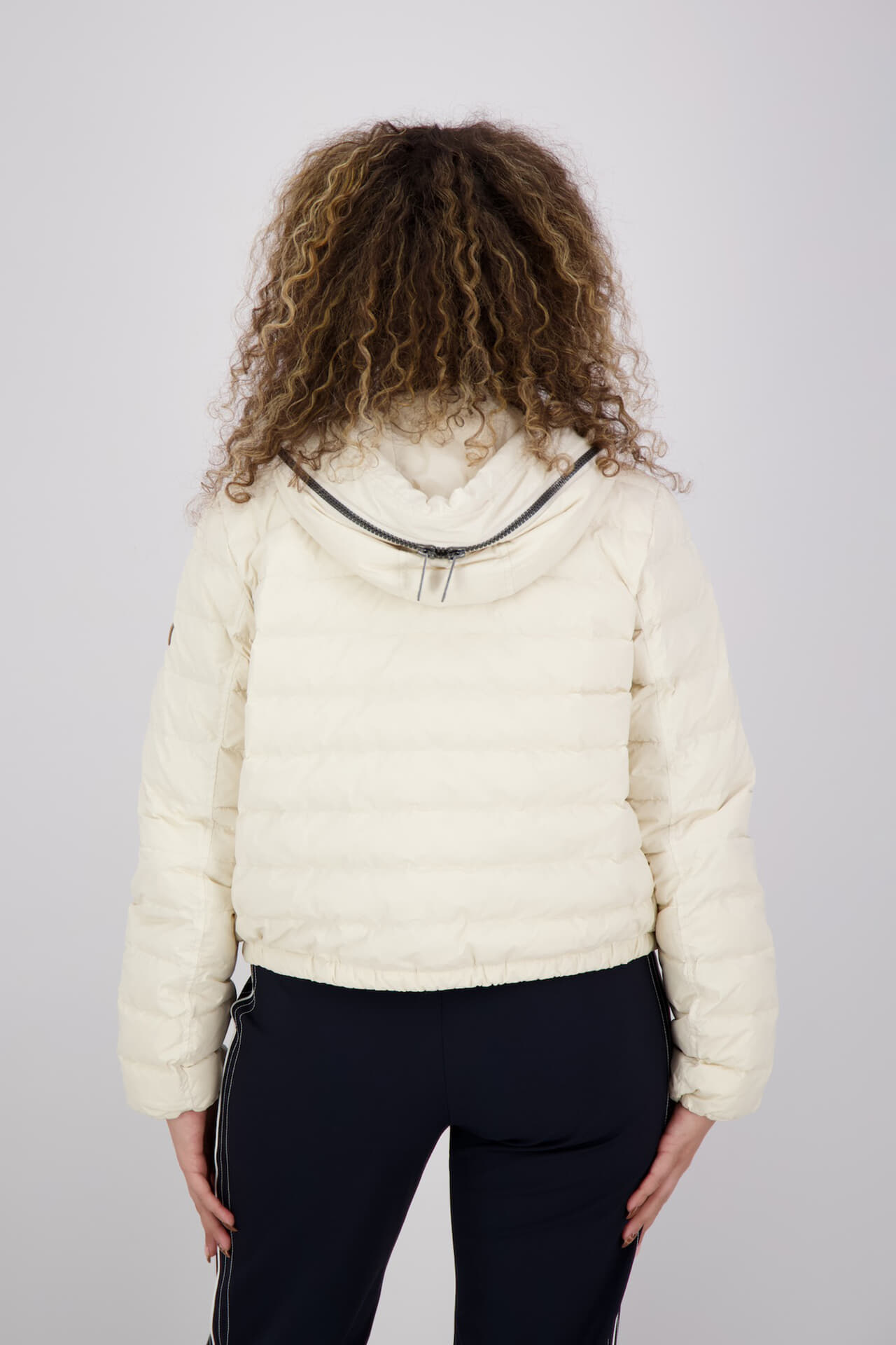 Deze donsjas Glenda van Moscow is licht van gewicht en perfect voor het zomerseizoen. Het model is gemaakt van polyamide en gevoerd met eendendons en veren. De jas heeft een capuchon met trekkoord en een opvallend ritsdetail met logo. Ritszakken en een elastische zoom zorgen voor comfort en praktische details. Ideaal als functionele buitenlaag voor frisse dagen.
