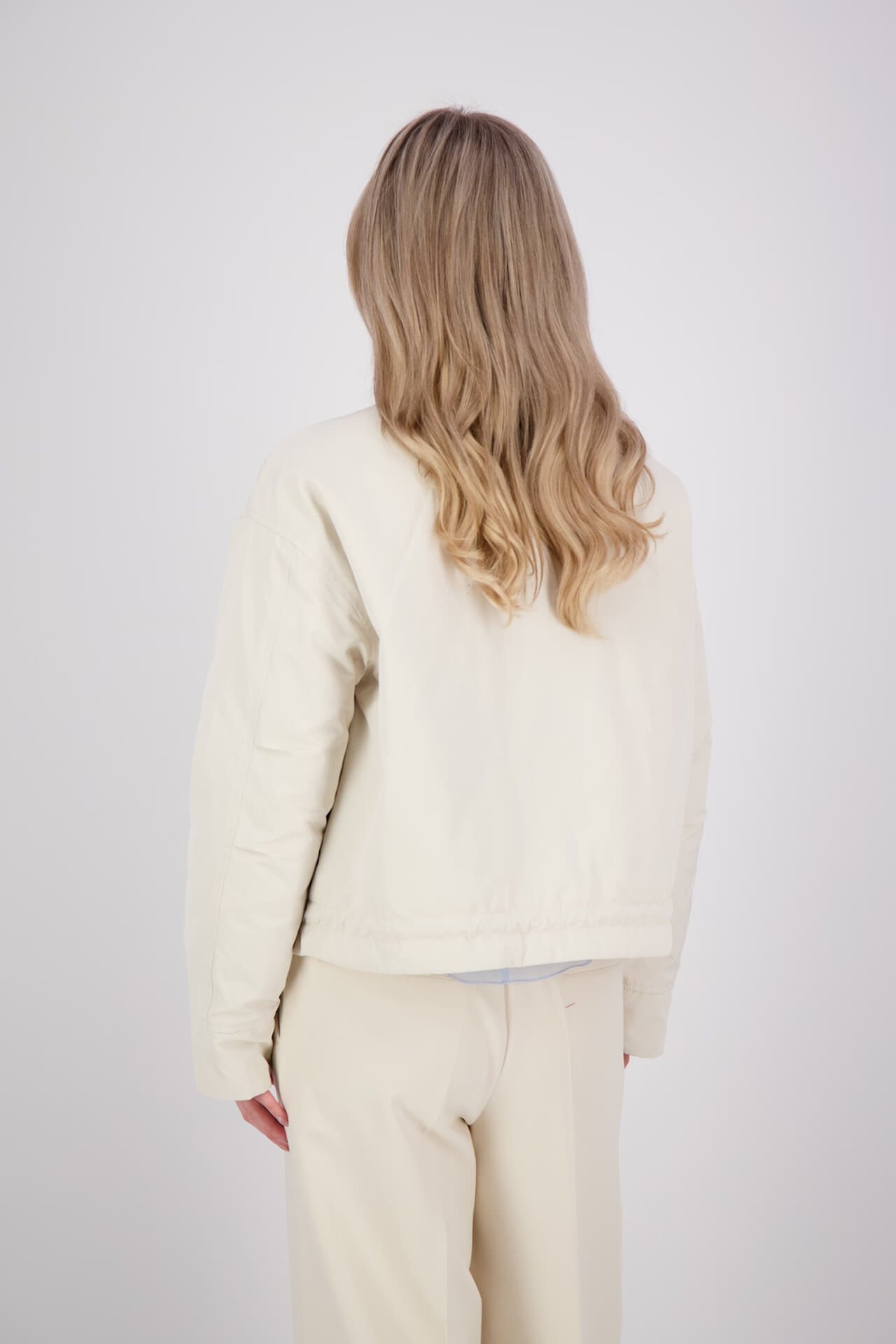 Donsjack Hameli van Moscow is een gewatteerde jas in bomberstijl met casual, minimalistische uitstraling. De effen stof, spreidkraag met overhemdkraag en lange mouwen geven een strakke lijn, terwijl drukknopen, voorzakken met klep en een verstelbaar koord in de zoom zorgen voor praktisch draaggemak.