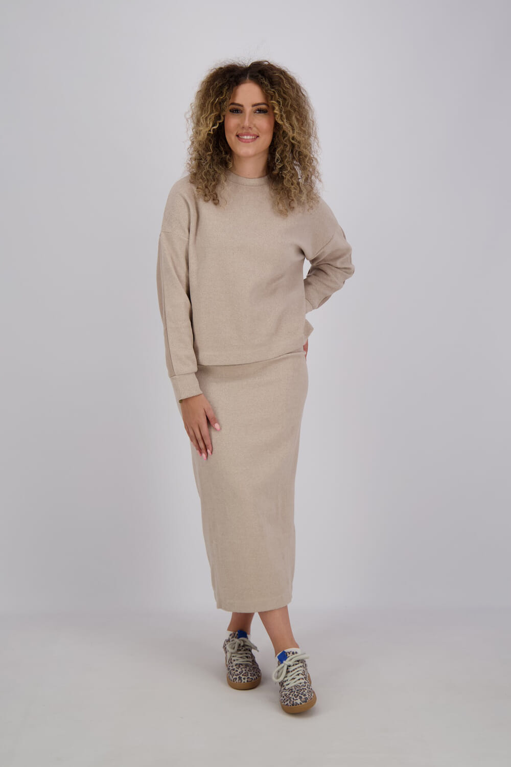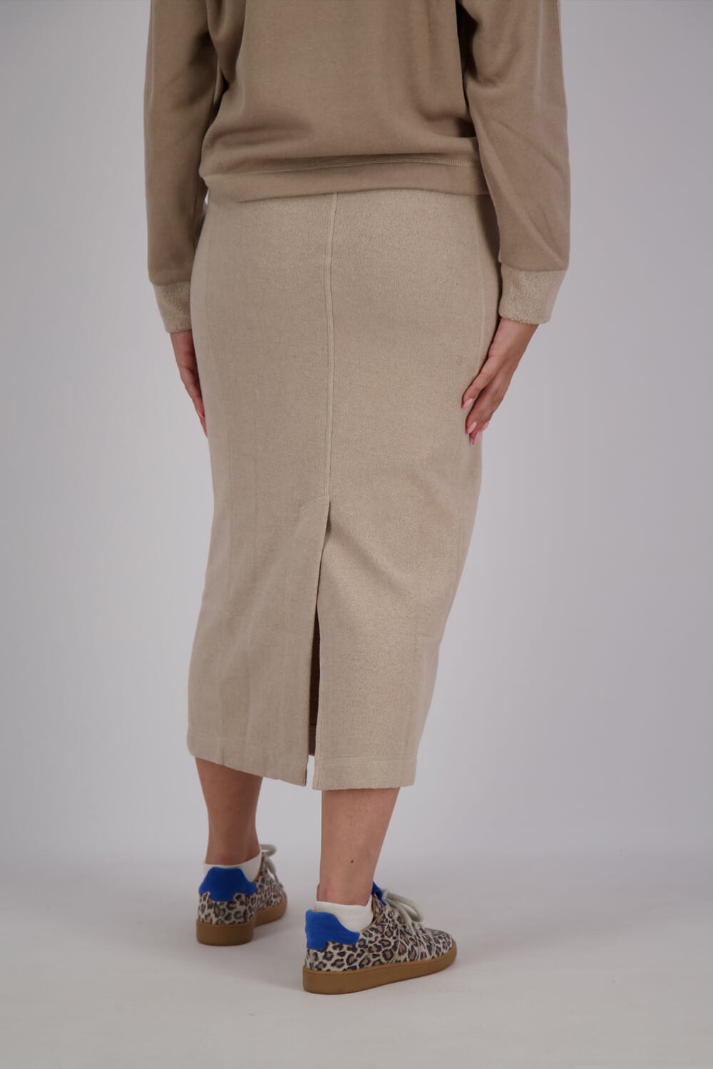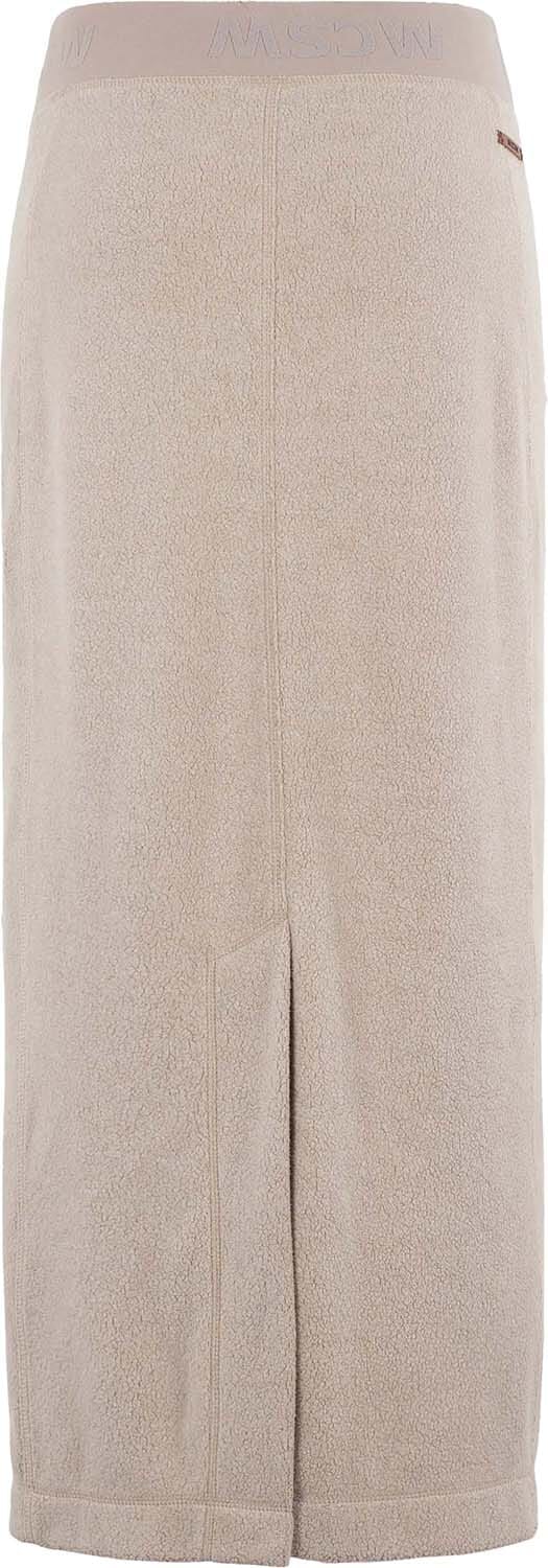 Deze rok Semi van Moscow in de kleur chalk is een warme must-have voor het winterseizoen. Het model heeft een midi lengte en is uitgevoerd in een zachte teddy stof van polyester en katoen. De elastische tailleband met Moscow-logo zorgt voor een comfortabele pasvorm en een sportieve touch. Aan de achterzijde zit een split middenin, wat zorgt voor extra bewegingsvrijheid. Perfect te combineren met een knit of sweater voor een cozy look.