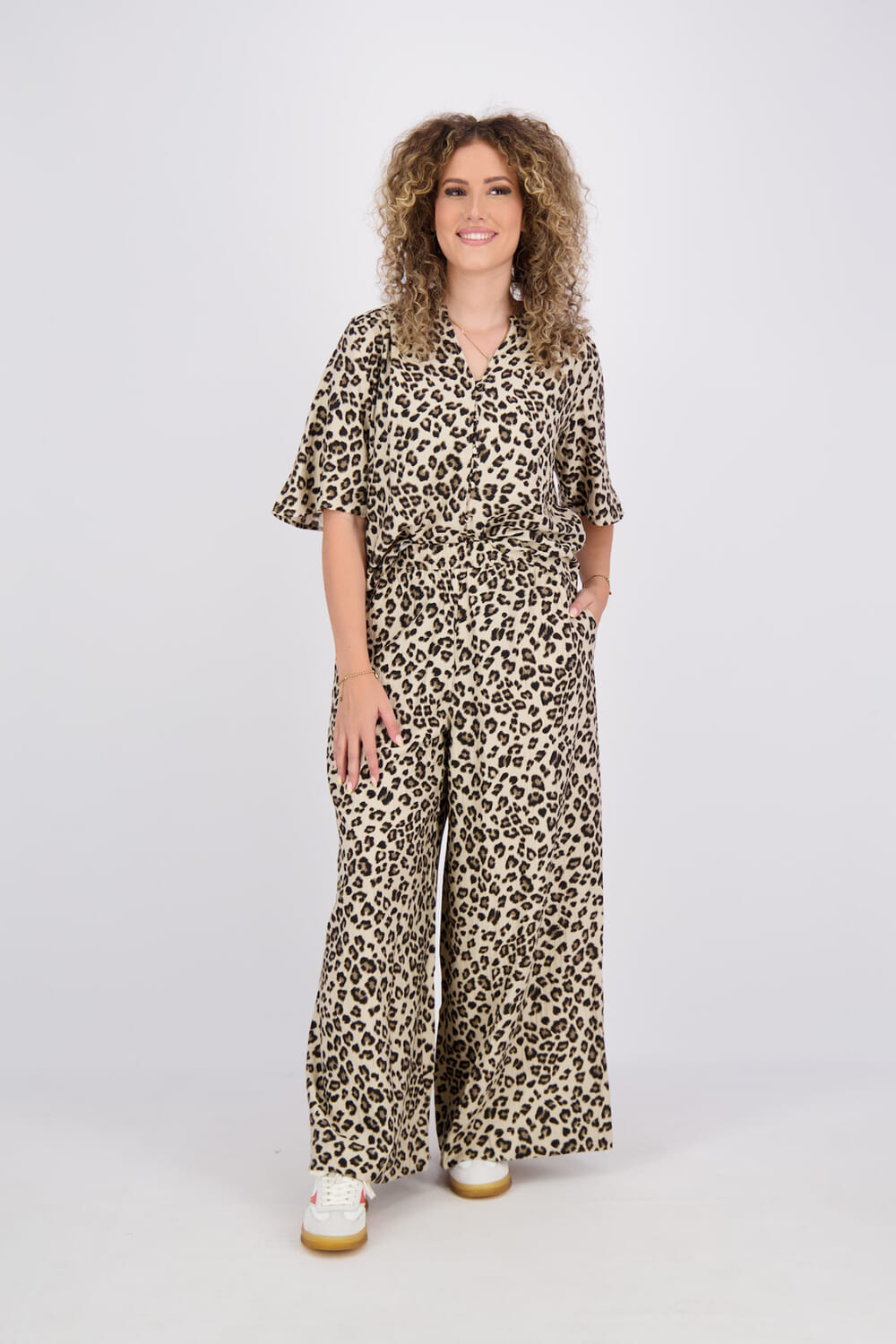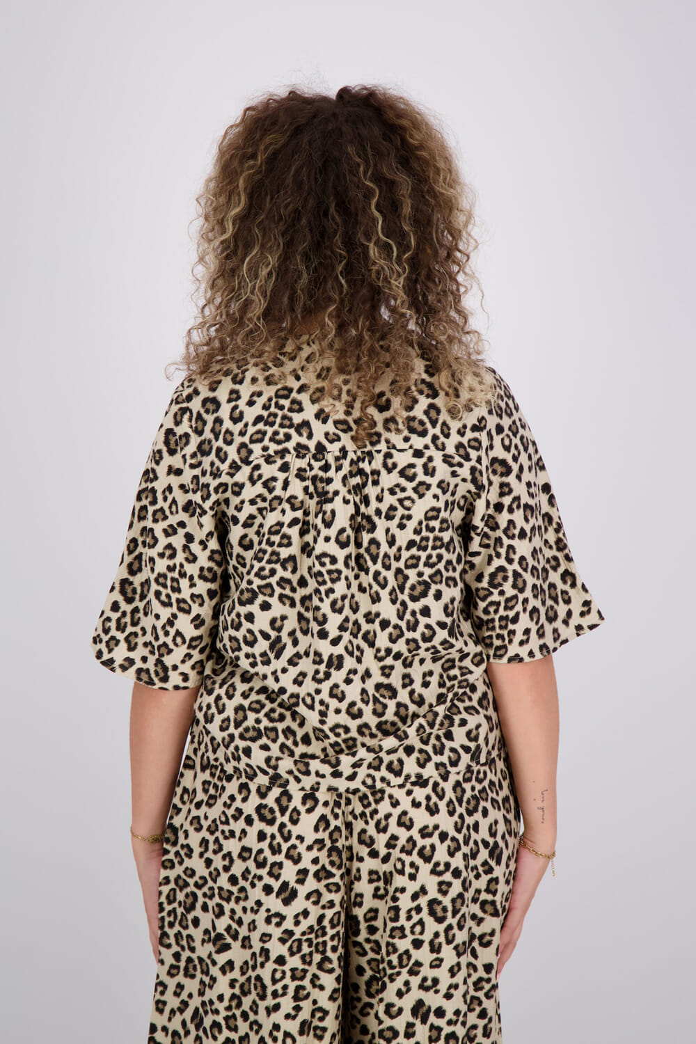 Blouse Kalani Vlora van MSCH Copenhagen is een dames blouse met een bohemian en casual stijl. Het heeft een opstaande kraag en V-hals, met een losse pasvorm en driekwart mouwen. De blouse is gedecoreerd met een panterprint, ideaal voor een casual gelegenheid.