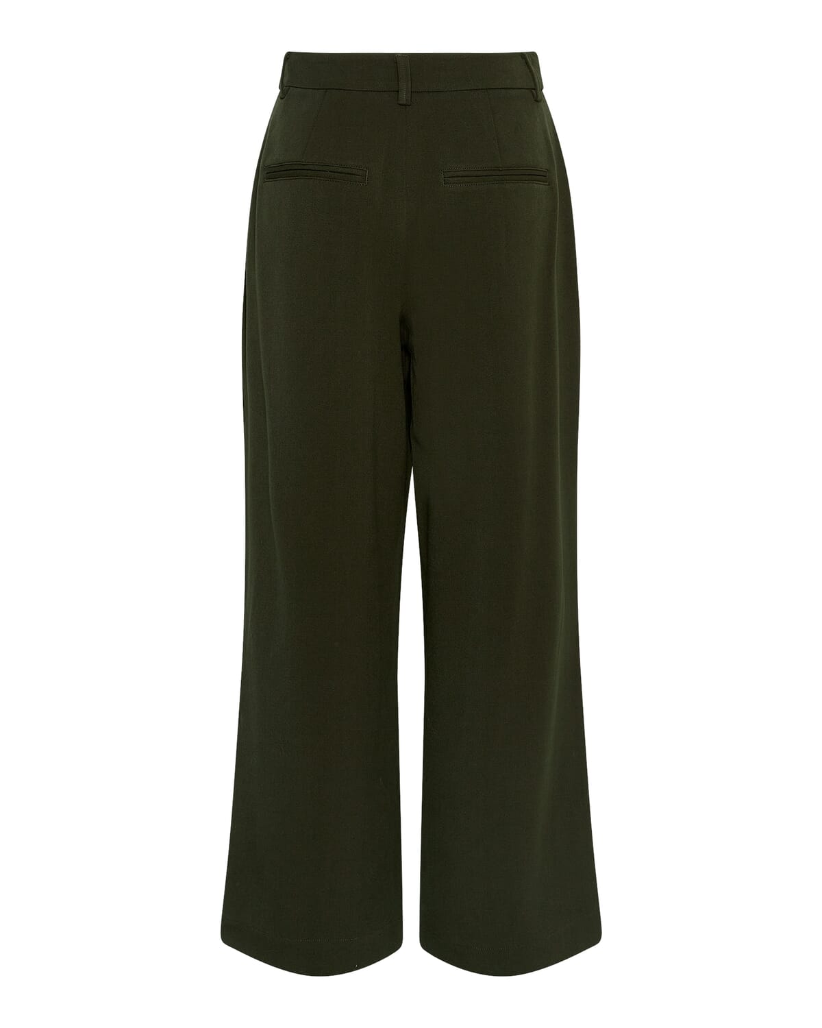 De Pantalon Henrika HW van MSCH Copenhagen is een stijlvolle dames pantalon met een minimalistisch design. Deze effen broek heeft een normale taille en wijde pijpen, voorzien van voor- en achterzakken, en sluit met knoop en ritssluiting, perfect voor nette gelegenheden.