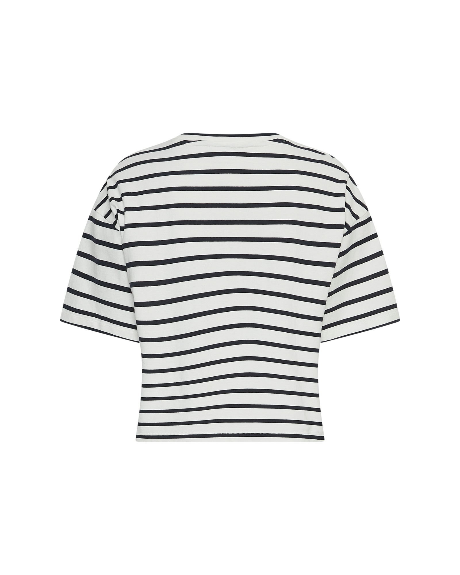 Top Leana van MSCH Copenhagen is een top met korte mouw, ronde hals en streeppatroon. Het minimalistische, casual model heeft een rechte, iets boxy pasvorm en verlaagde schoudernaden. De brede boorden geven structuur. Combineer met een jeans of een nette broek voor een relaxte outfit.
