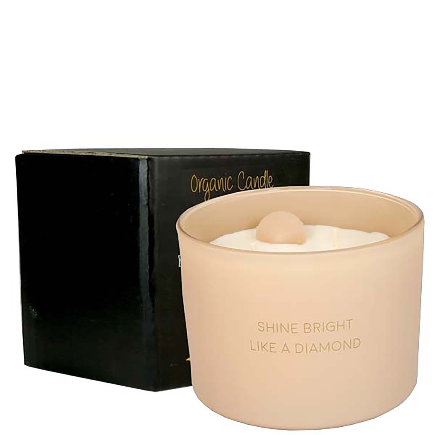 Ervaar de rust met deze luxe sojakaars van My Flame Lifestyle. Deze kaars, subtiel geëtst met "Shine Bright Like a Diamond", creëert een warme en uitnodigende sfeer in elk interieur. Met een verfijnde geur en een elegant design, is het de perfecte aanvulling voor je huis.