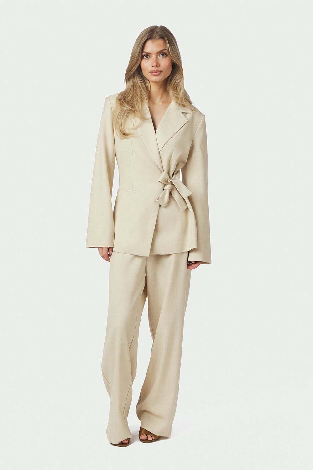 De Blazer Carmia van Neo Noir is een elegante dames blazer met lange mouwen en een effen patroon. Het stijlvolle ontwerp is verfijnd en veelzijdig, perfect voor elke gelegenheid. De blazer heeft een unieke striksluiting die zorgt voor een moderne en chique uitstraling.