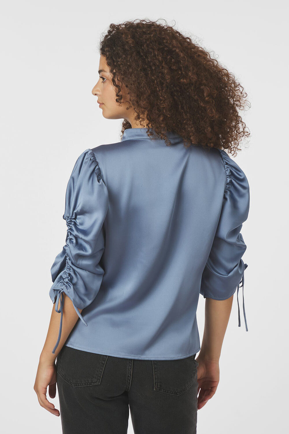 De Blouse Alvira Drapy Satin van Neo Noir is een trendy dames top met een opstaande kraag en V-hals. De 3/4 mouwen zijn voorzien van elastische manchetten, wat zorgt voor een stijlvolle uitstraling. Het effen patroon maakt deze blouse veelzijdig en tijdloos.