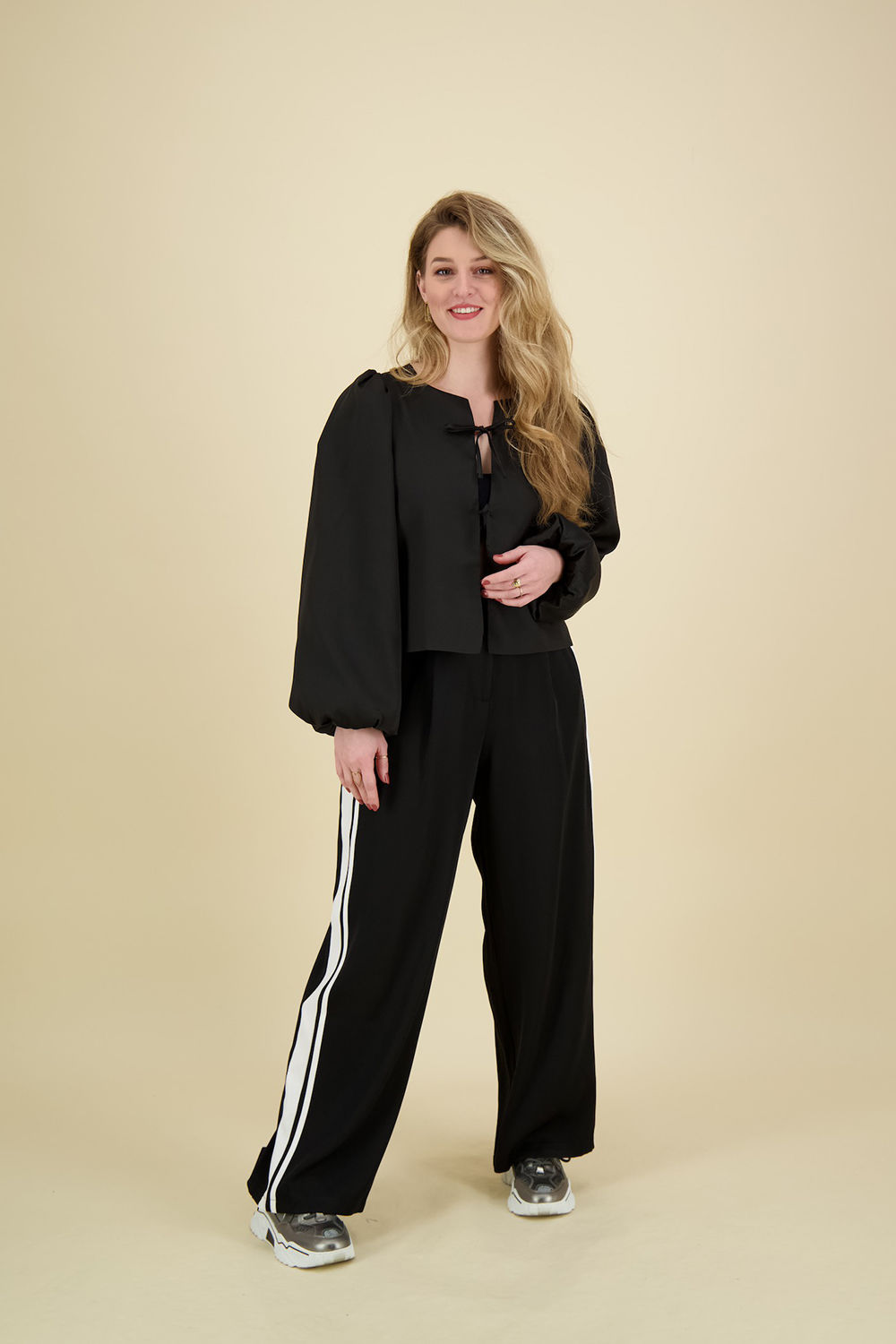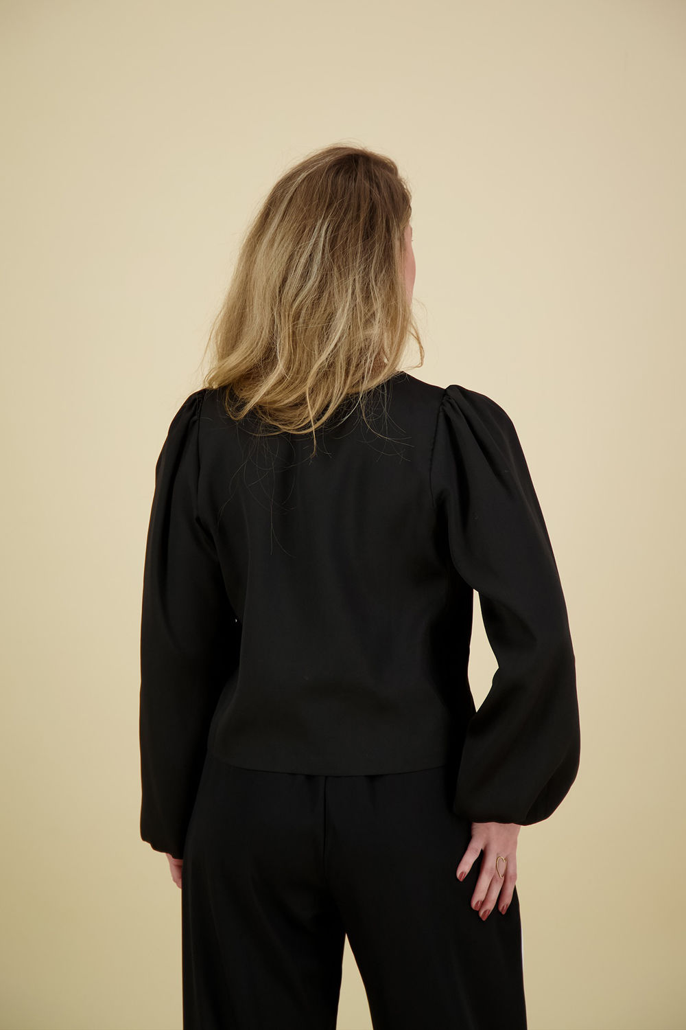Blouse Daliska van Neo Noir is een stijlvolle blouse met lange mouwen en een koordsluiting. Het heeft een cropped fit en een effen patroon, ideaal voor elke gelegenheid. De blouse combineert moeiteloos een vrouwelijke stijl met moderne elegantie.