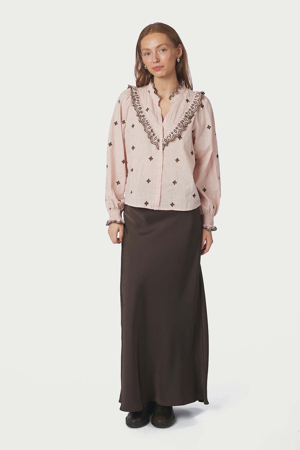 De Blouse Degas van Neo Noir is een elegante dames blouse met lange mouwen en verfijnde gaatjespatroon. De manchetten met knopen voegen een subtiel detail toe, terwijl de vrouwelijke stijl een stijlvolle touch biedt voor elke gelegenheid.
