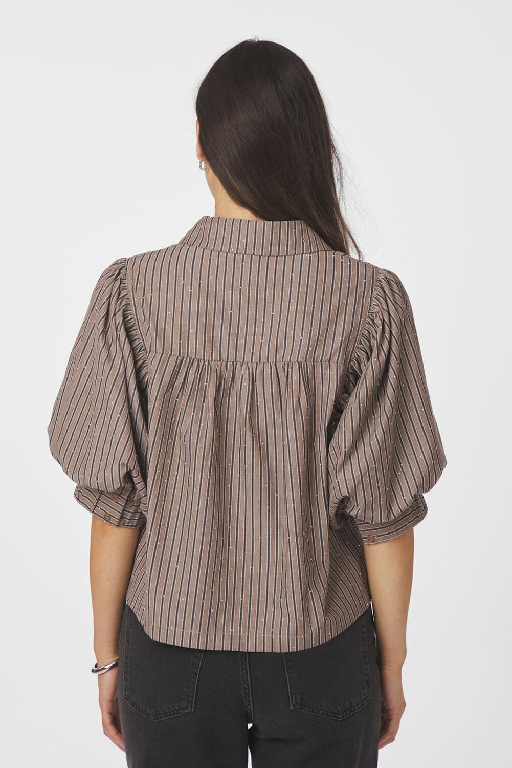 De Blouse Etta van Neo Noir is een casual dames blouse met een button down kraag en een losse pasvorm. De driekwart mouwen met knopen en het gestreepte patroon maken het stijlvol en comfortabel voor elke gelegenheid. Perfect voor een alledaagse, vrouwelijke look.