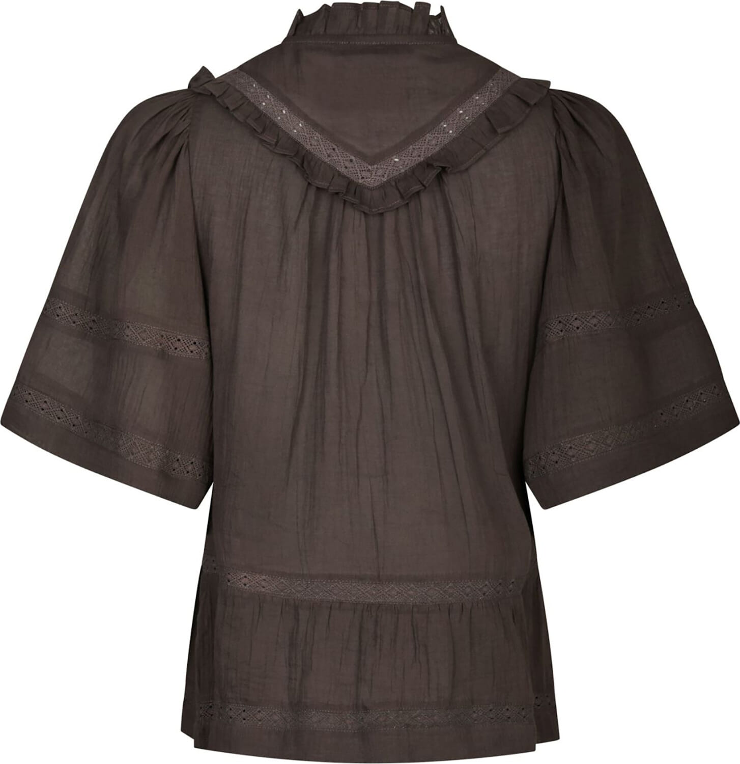 Blouse Evienne s voile van Neo Noir is een stijlvolle blouse met een vrouwelijke uitstraling. Deze blouse heeft een v-halslijn, elastische manchetten en een losse pasvorm die comfort biedt. De driekwart mouwen en het effen patroon maken het perfect voor casual gelegenheden.