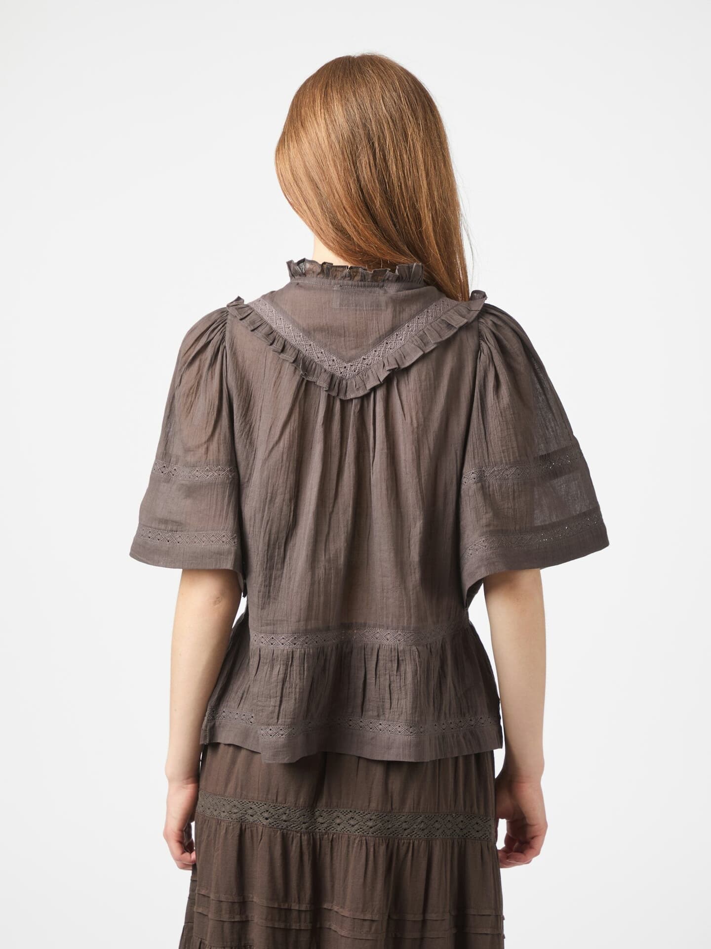 Blouse Evienne s voile van Neo Noir is een stijlvolle dames blouse met een ronde halslijn en een losse pasvorm. De korte mouwen en het effen patroon maken deze blouse veelzijdig en gemakkelijk te combineren met diverse outfits. Een must-have voor elke kledingkast.