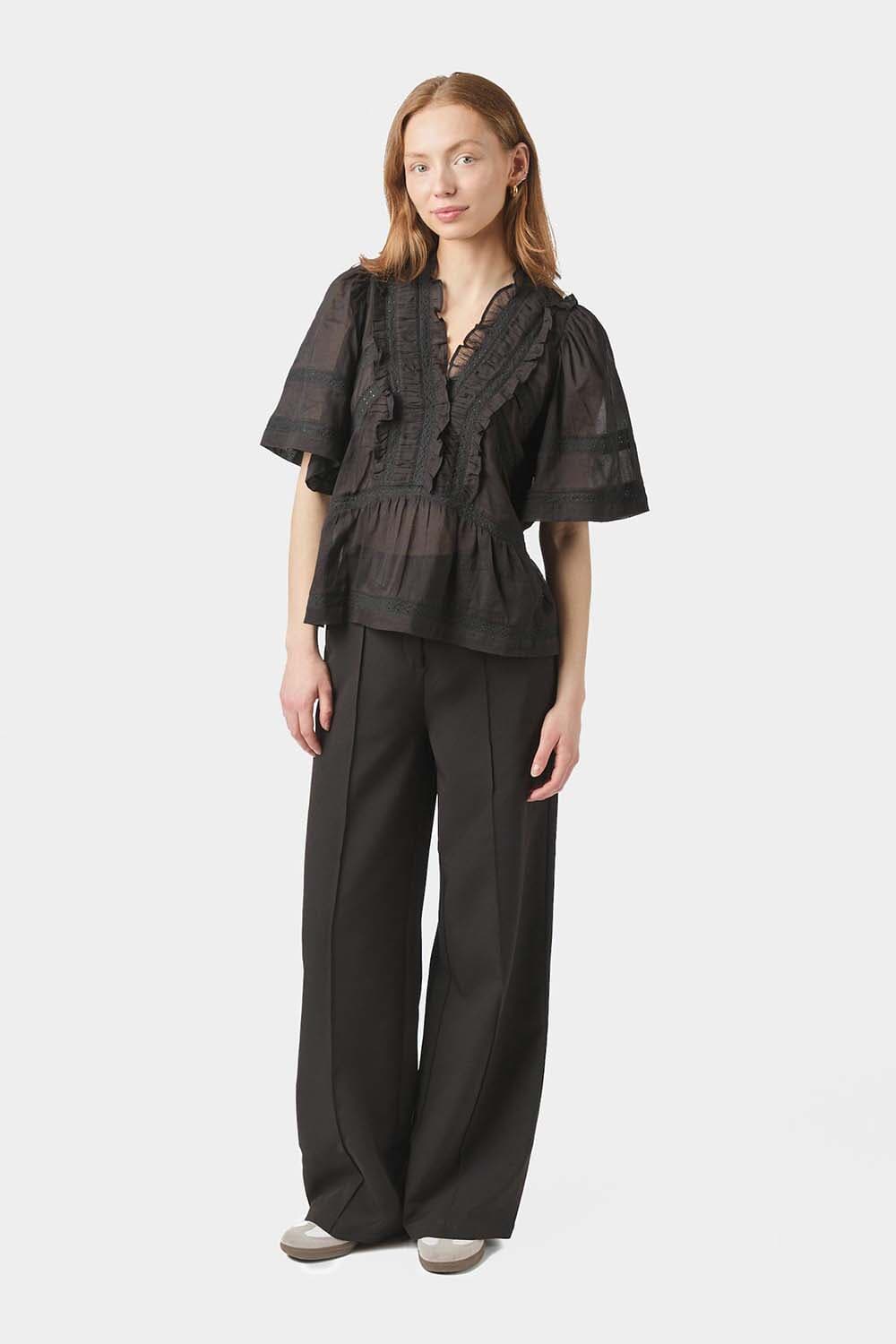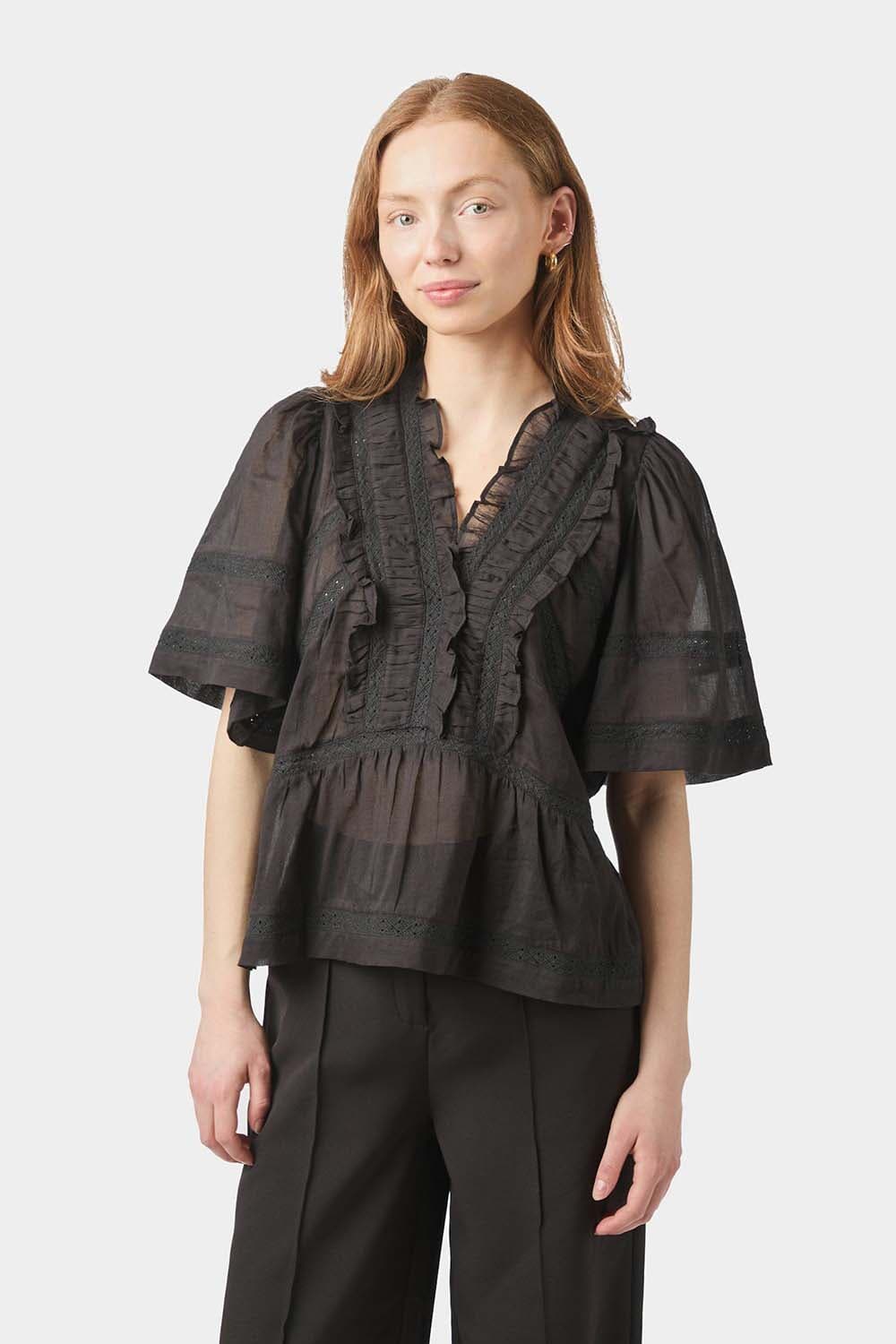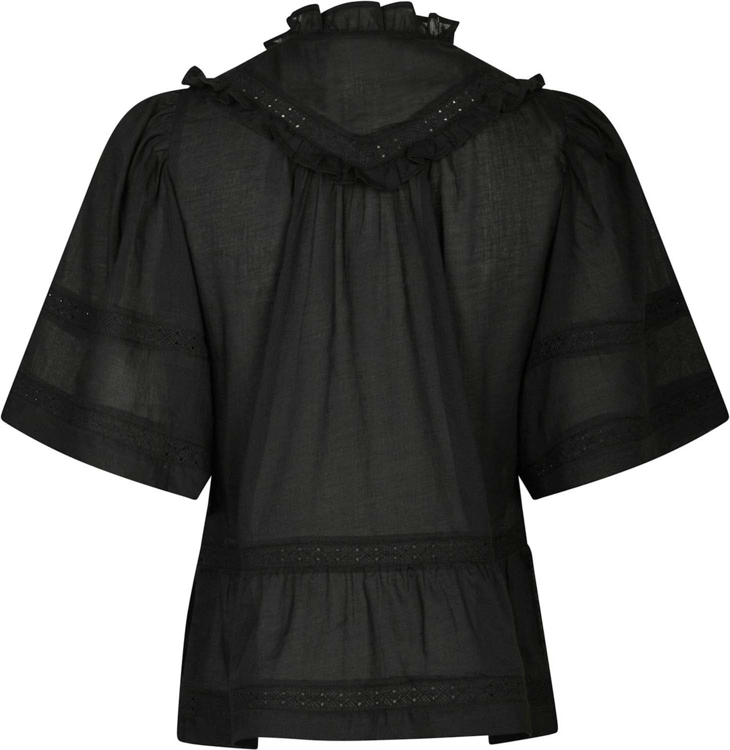 Blouse Evienne s voile van Neo Noir is een stijlvolle dames blouse met een ronde halslijn en een losse pasvorm. De korte mouwen en het effen patroon maken deze blouse veelzijdig en gemakkelijk te combineren met diverse outfits. Een must-have voor elke kledingkast.