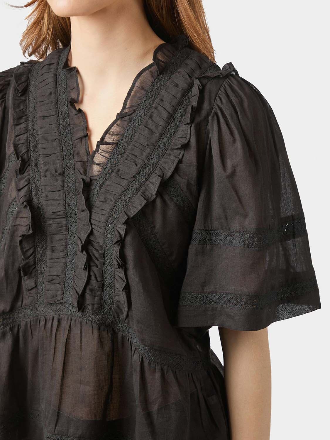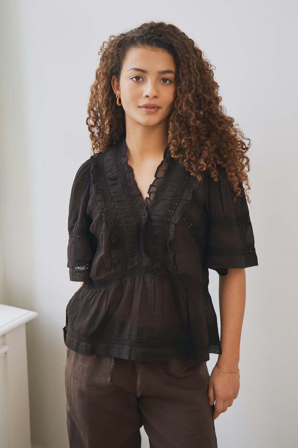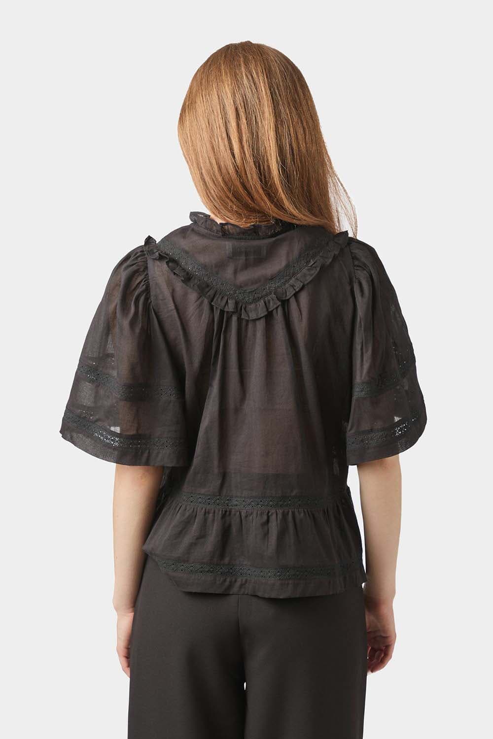 Blouse Evienne s voile van Neo Noir is een stijlvolle dames blouse met een ronde halslijn en een losse pasvorm. De korte mouwen en het effen patroon maken deze blouse veelzijdig en gemakkelijk te combineren met diverse outfits. Een must-have voor elke kledingkast.