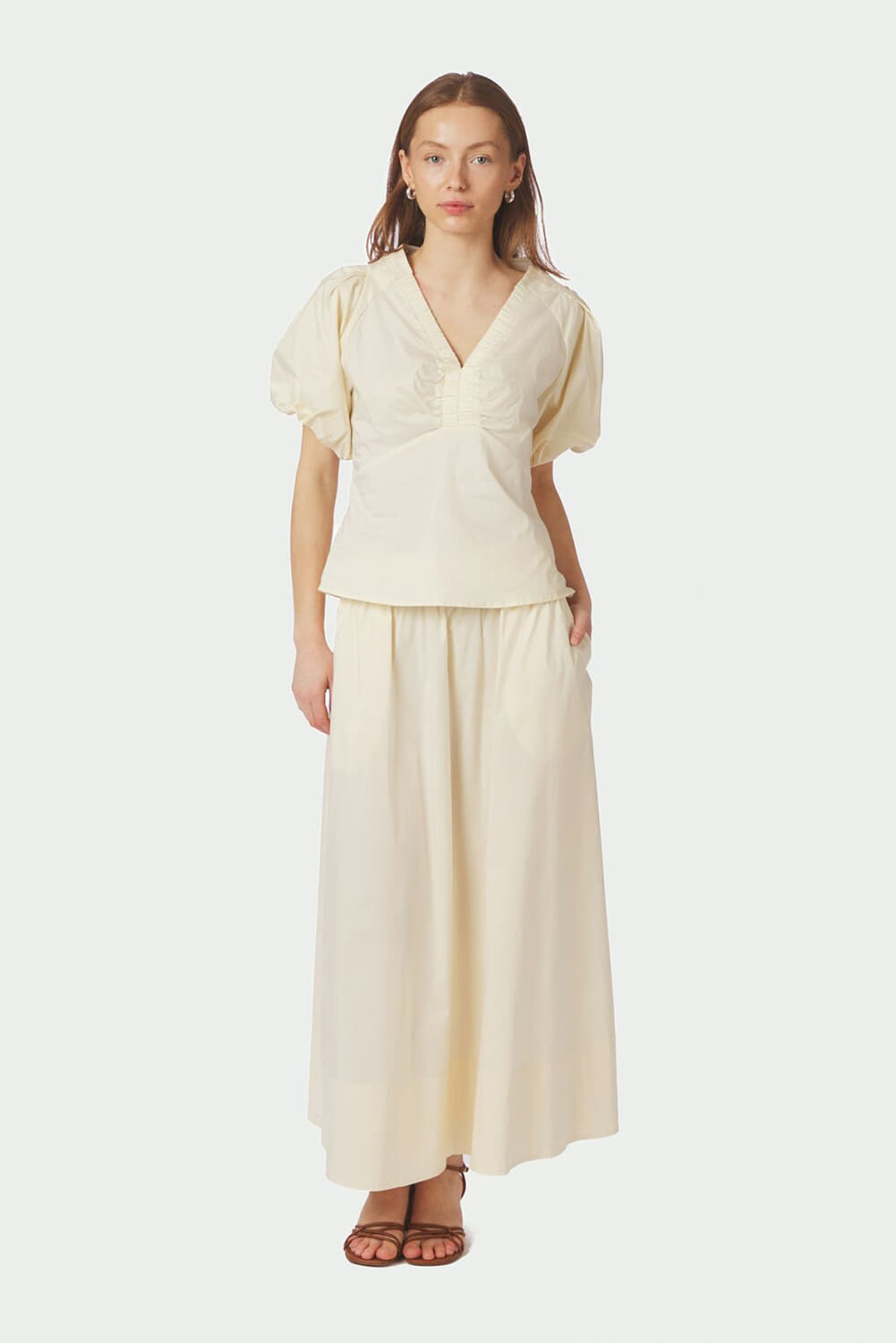 Blouse Irina Poplin van Neo Noir is een stijlvolle dames blouse met een elegante V-hals en korte mouwen. De getailleerde pasvorm accentueert de vrouwelijke lijnen, terwijl het effen patroon zorgt voor een tijdloze uitstraling. Perfect voor elke gelegenheid waarin comfort en stijl samenkomen.