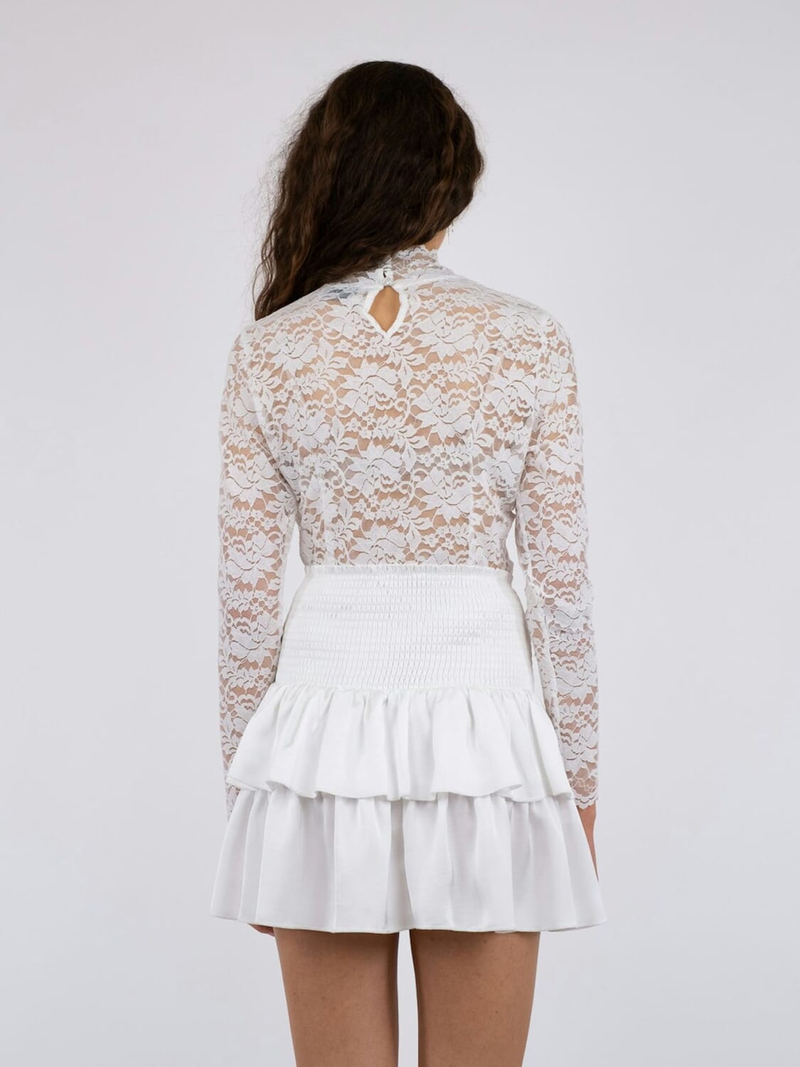 De Blouse Liza Laceflower van Neo Noir is een stijlvolle top met lange mouwen en een opstaande kraag. De getailleerde pasvorm en het effen patroon maken het geschikt voor nette gelegenheden. De vrouwelijke stijl wordt versterkt door de delicate kanten afwerking.