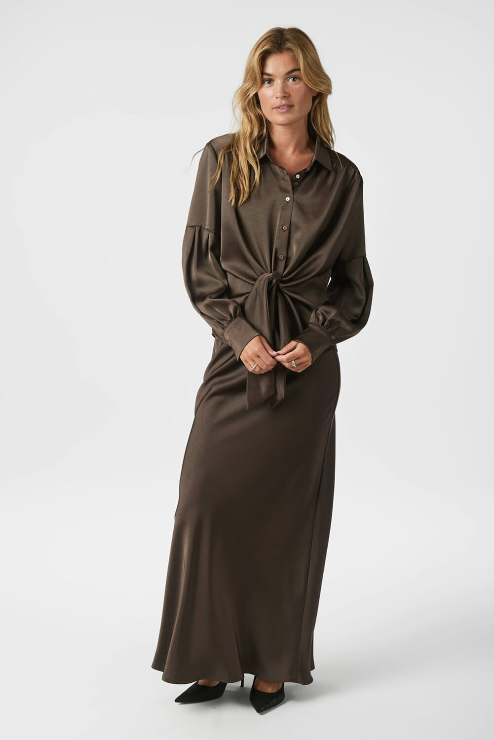 De Blouse Naja Satin van Neo Noir is een stijlvolle dames blouse met een button down kraag en lange mouwen. De getailleerde pasvorm en effen patroon geven een verfijnde uitstraling. Perfect voor nette gelegenheden dankzij de knoopsluiting en manchetten met knopen.
