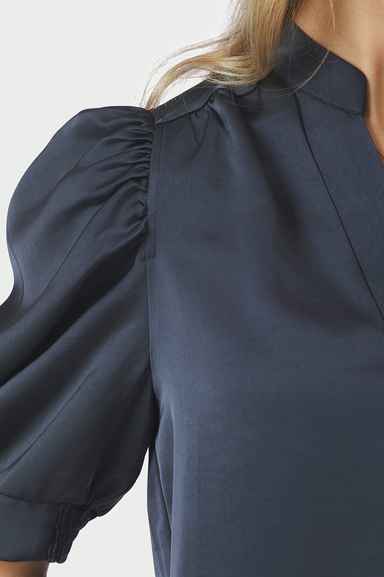 De Blouse Roella Heavy van Neo Noir is een verfijnde dames blouse met korte mouw en effen patroon. Het ontwerp straalt elegantie uit door de geraffineerde plooien op de schouders en de soepele stof. Perfect voor elke gelegenheid waarin stijl voorop staat.