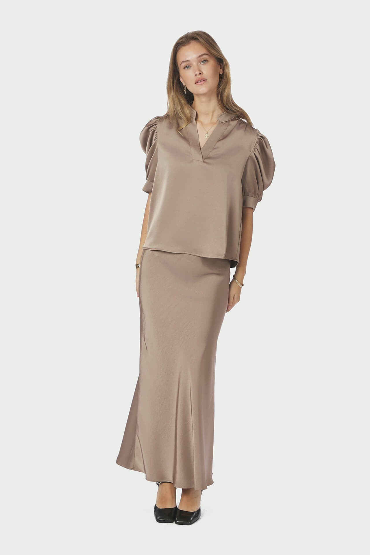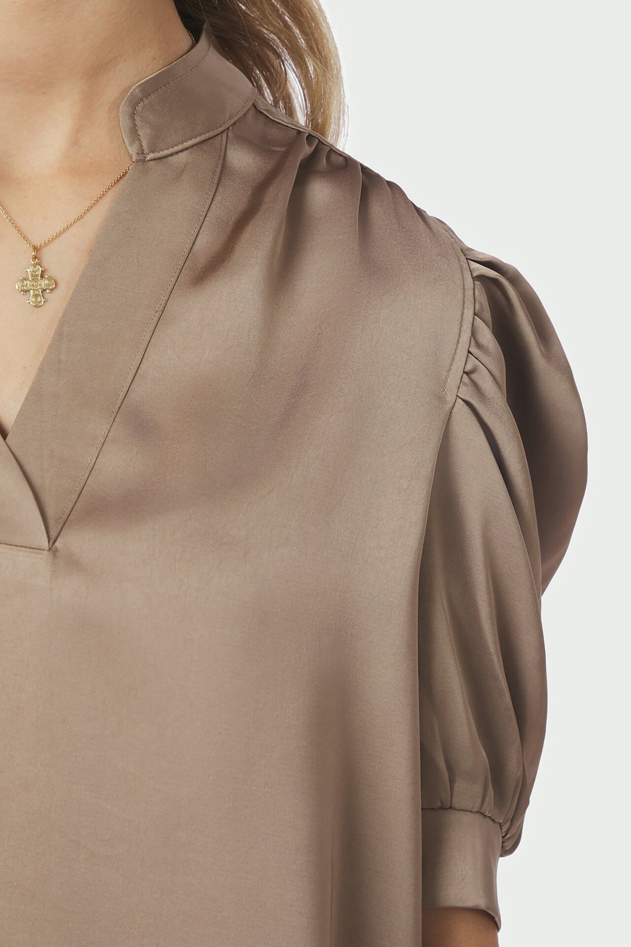 De Blouse Roella Heavy van Neo Noir is een verfijnde dames blouse met korte mouw en effen patroon. Het ontwerp straalt elegantie uit door de geraffineerde plooien op de schouders en de soepele stof. Perfect voor elke gelegenheid waarin stijl voorop staat.