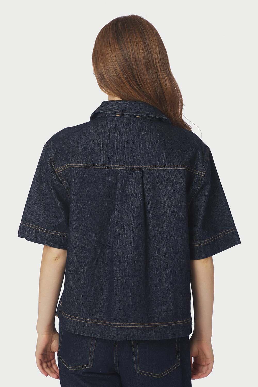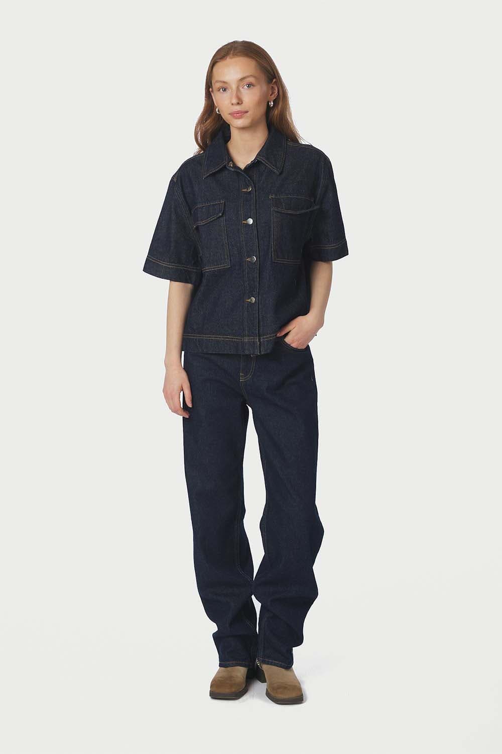Blouse Tiki Denim van Neo Noir is een casual dames blouse met een button down kraag en korte mouwen. Deze effen blouse heeft zakken op de voorzijde en sluit met knopen. De regular fit maakt het een veelzijdige keuze voor een stijlvolle look.