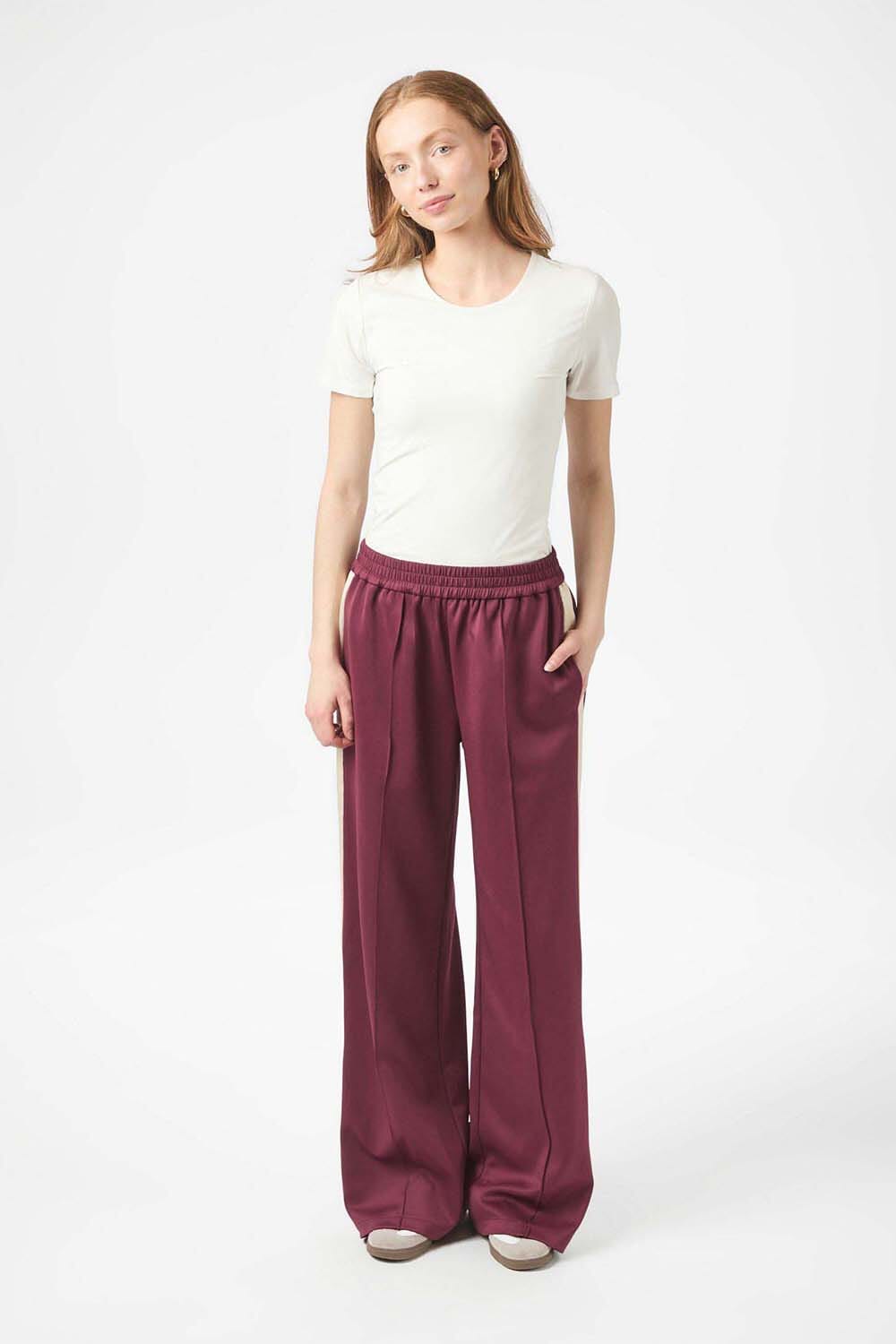 De Broek Puggy van Neo Noir is een casual lange broek met wijde pijpen en elastische taille. Deze broek heeft een elastische band en knoopsluiting, met stijlvolle zijstreep en zakken op de achterzijde. Ideaal voor een ontspannen en modieuze look.