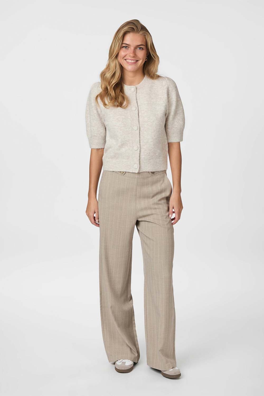 Het gebreid vest Trudy van Neo Noir is een stijlvol dames vest met een ribgebreid mouwboord en korte mouwen. De knoopsluiting en effen patroon maken het perfect voor casual gelegenheden. De regular fit zorgt voor een comfortabele en vrouwelijke uitstraling.
