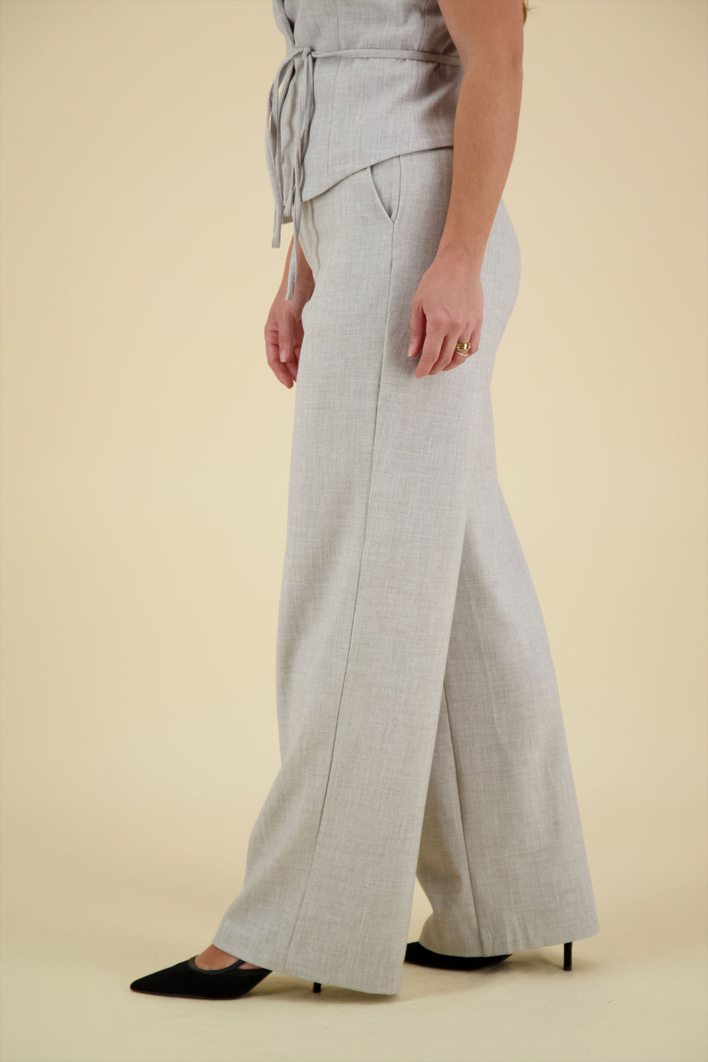 De Pantalon Emmett van Neo Noir is een stijlvolle pantalon met wijde pijpen en een normale taille. Gemaakt van hoogwaardig linnen, biedt deze effen broek een luchtig comfort. De achterzakken voegen praktische elegantie toe aan deze veelzijdige broek voor elke gelegenheid.