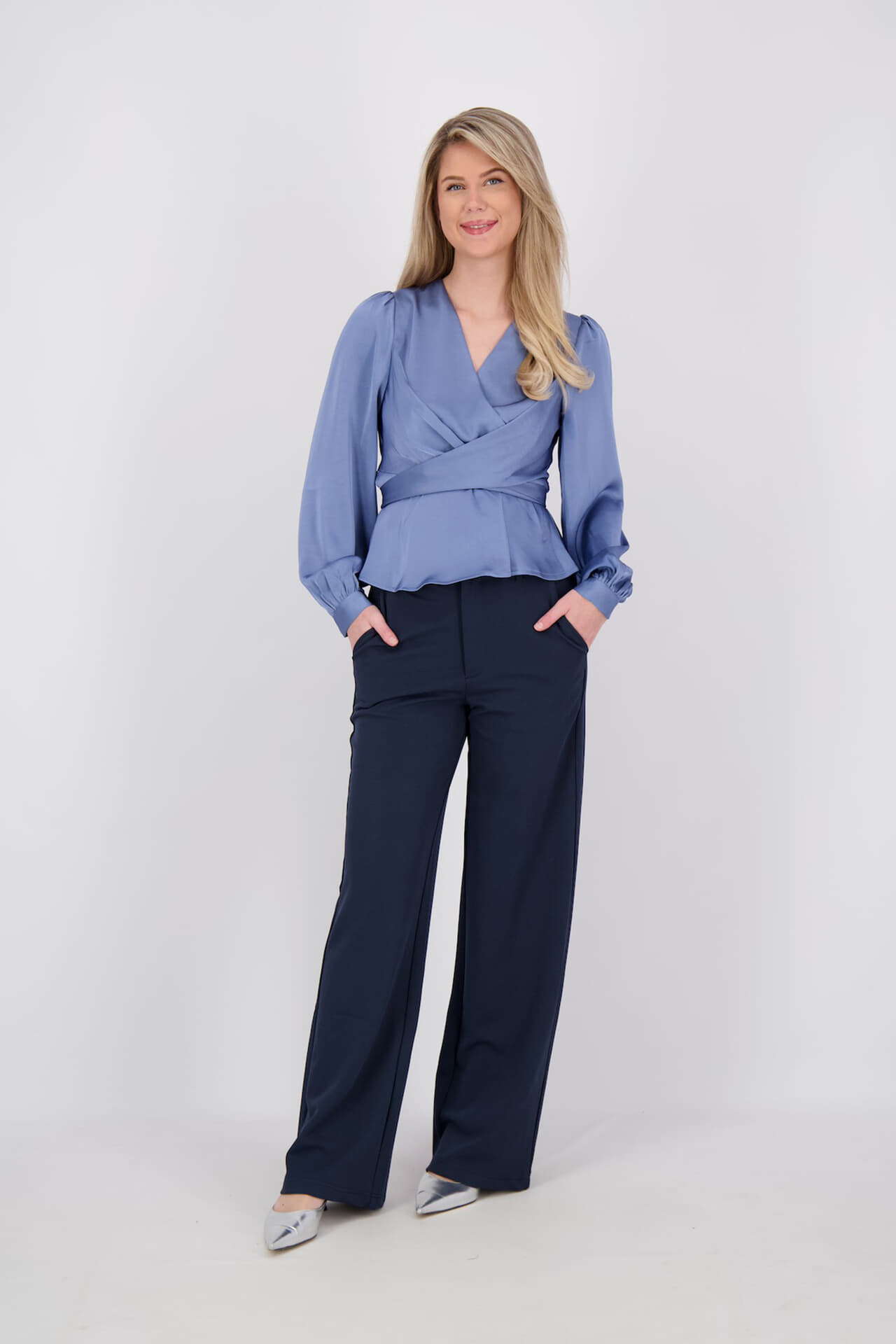 Pantalon Nathalie van Neo Noir is een elegante pantalon met wijde pijpen en een hoge taille. Deze stijlvolle broek heeft een knoop- en ritssluiting, wat zorgt voor een comfortabele en modieuze pasvorm. Ideaal voor zowel formele als casual gelegenheden, met een verfijnde uitstraling.