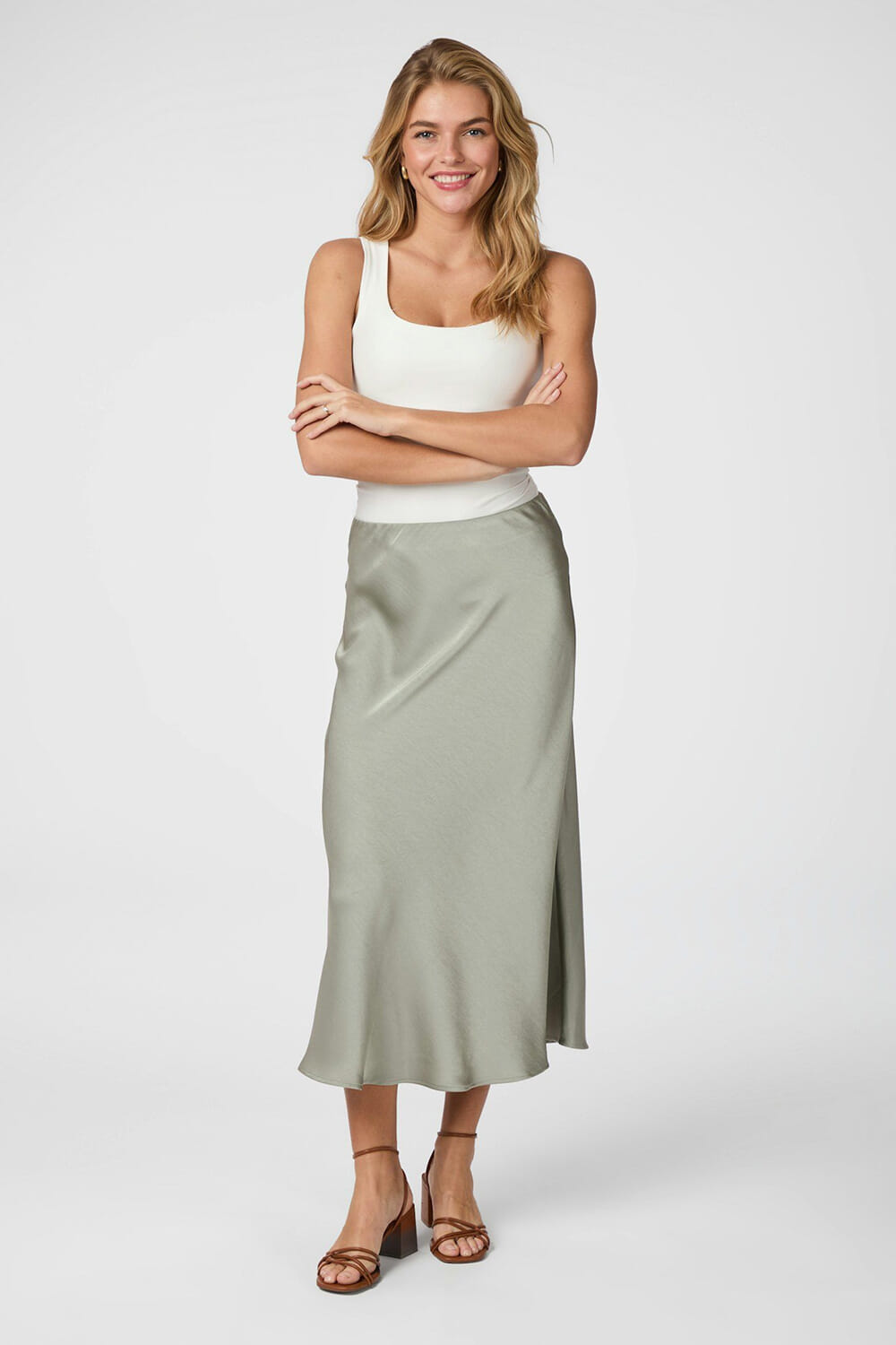 De Rok Bovary van Neo Noir is een stijlvolle lange damesrok met een minimalistisch ontwerpen met elastiek aan de binnenkant van de taille. Deze rok heeft een midi-lengte en een normale taille. De rok is schuin gesneden en heeft een zeer flatterende pasvorm. De kwaliteit is een mooie gladde satijnstof. De vloeiende stof en tijdloze stijl maken het een veelzijdige keuze.