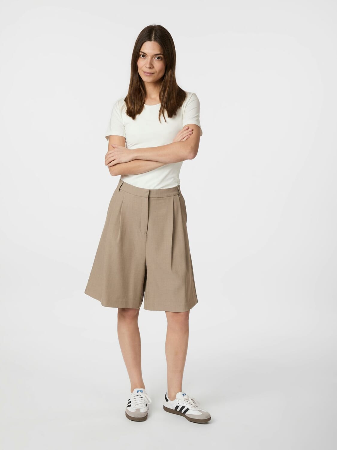 De Short Nika Structure van Neo Noir is een stijlvolle short met hoge taille en knoop- en ritssluiting. Deze businessstijl short heeft wijde pijpen en combineert elegantie met comfort. Een veelzijdige toevoeging aan elke garderobe, perfect voor diverse gelegenheden.
