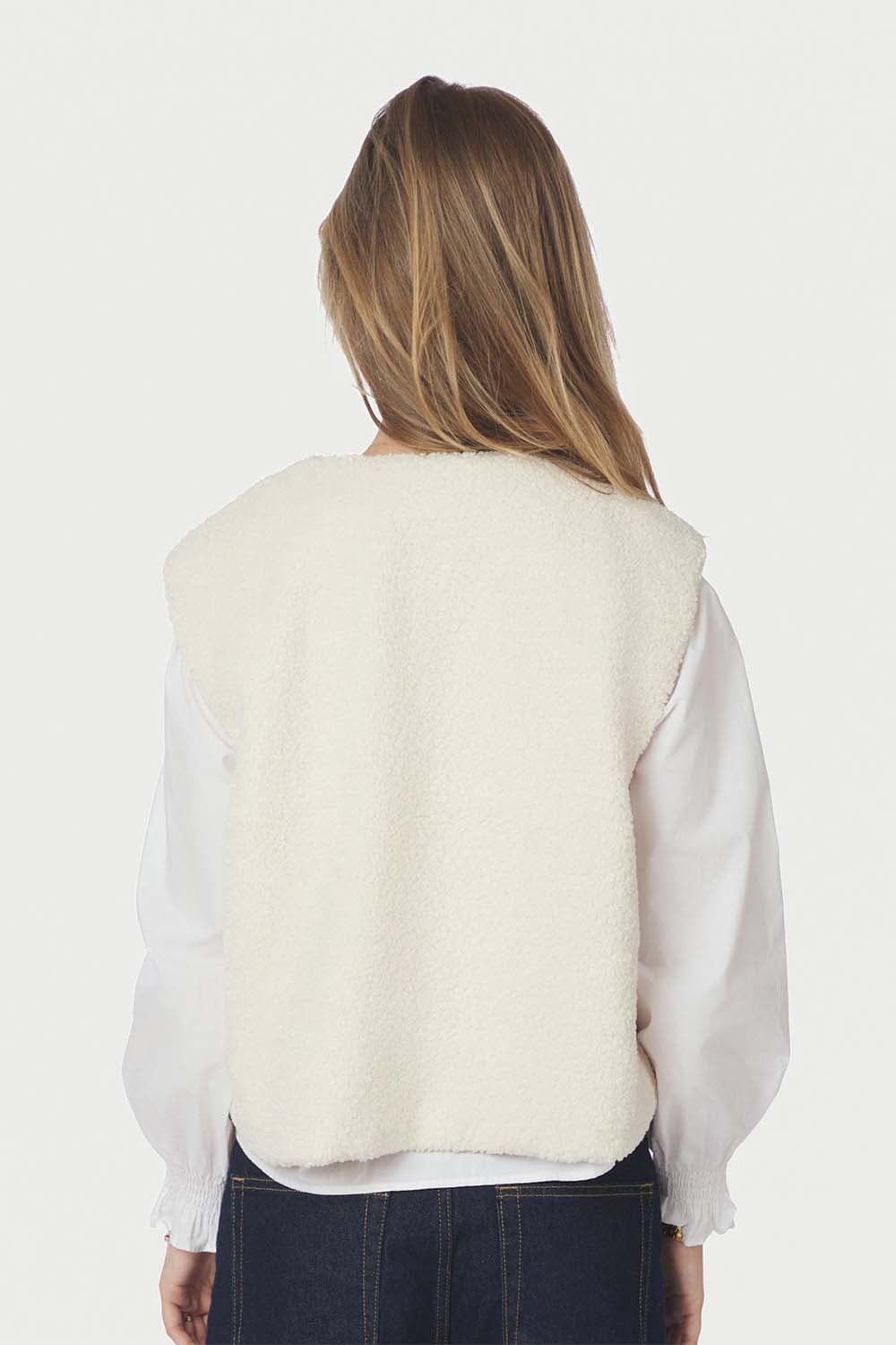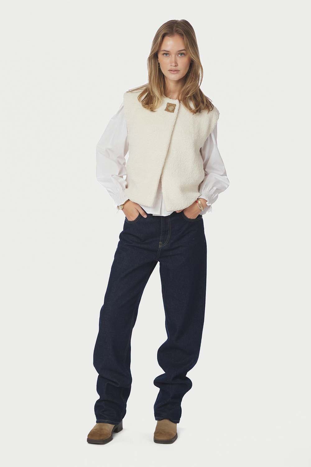 Spencer Anjanna van Neo Noir is een stijlvolle dames spencer met een minimalistisch ontwerp. Voorzien van knopen en een ronde halslijn, biedt deze spencer zonder mouwen een warme en comfortabele uitstraling. Perfect voor een eigentijdse, elegante garderobe.