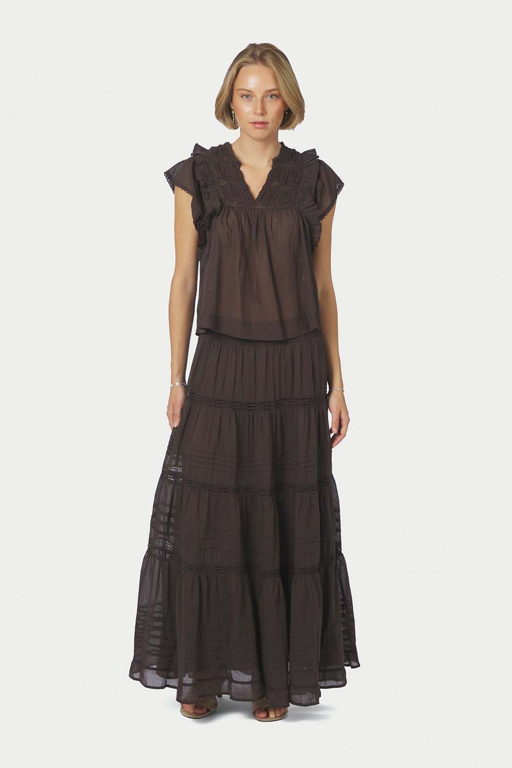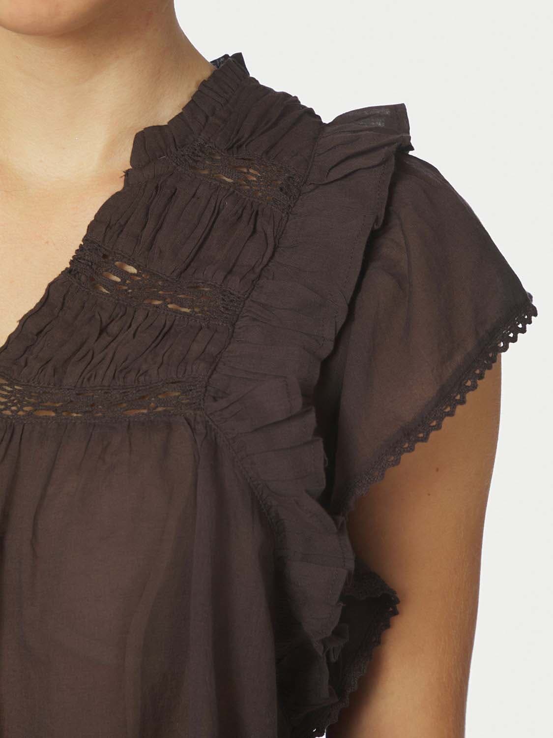 De Top Jayla van Neo Noir is een stijlvolle dames top met korte mouw. De elegante V-hals en losse pasvorm maken het een comfortabele keuze voor casual gelegenheden. De manchetten zonder knopen en het effen patroon zorgen voor een verfijnde, vrouwelijke uitstraling.