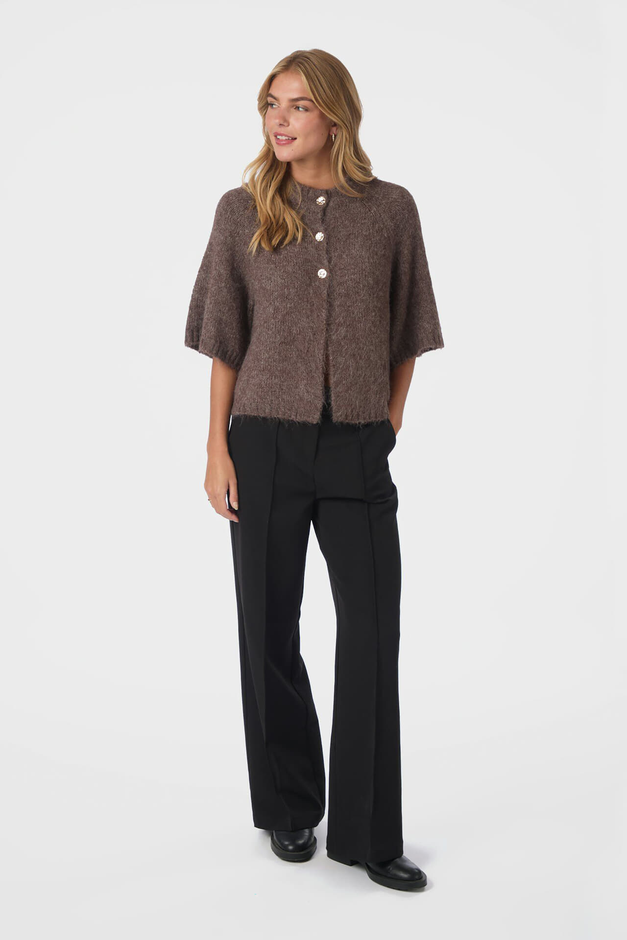 Vest Benuta Fluffy van Neo Noir is een stijlvol gebreid vest met opstaande kraag en driekwart mouwen. Het minimalistische ontwerp in effen patroon maakt het veelzijdig en toegankelijk, perfect voor diverse gelegenheden.