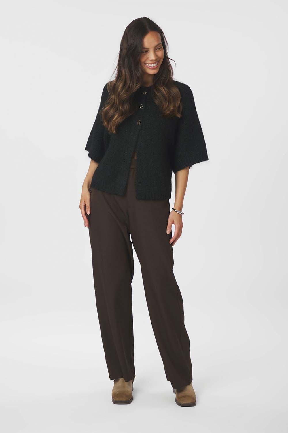 Vest Benuta van Neo Noir is een stijlvol dames vest met een casual uitstraling. Dit vest heeft een cropped, losse pasvorm, korte mouwen en een effen patroon, afgewerkt met knopen. Ideaal voor een comfortabele en modieuze look.