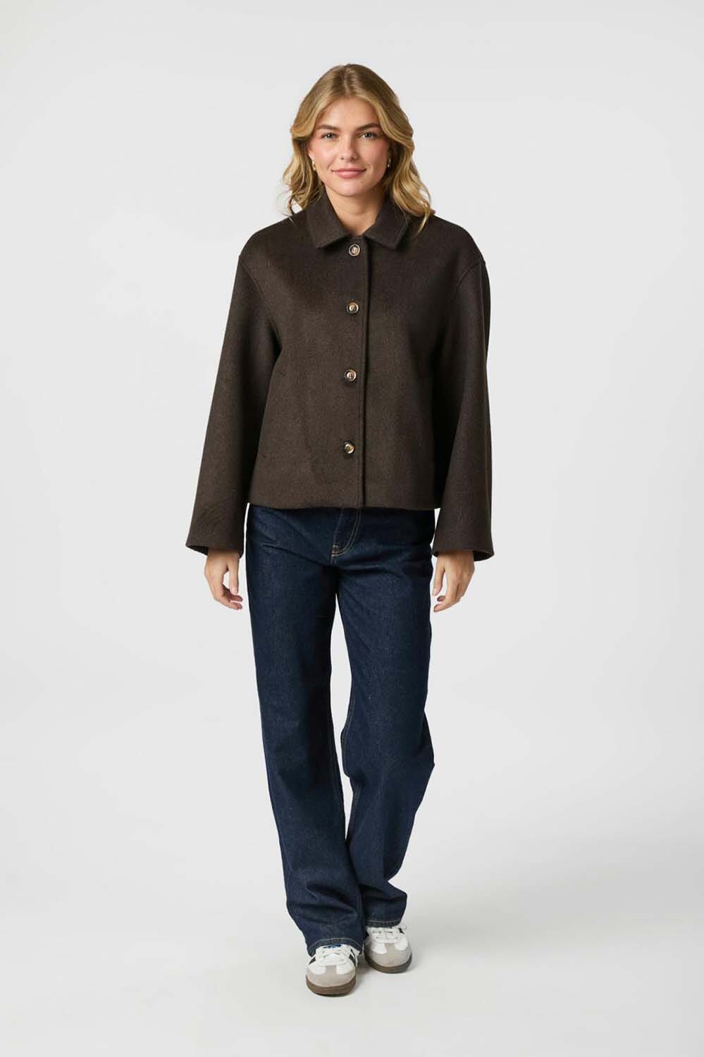 De Wollen Jas Hamra van Neo Noir biedt casual stijl met een normale taille en opstaande kraag. Voorzien van zakken op de voorzijde, knoopsluiting en lange mouwen met manchetten met knopen, is deze jas de perfecte aanvulling voor een stijlvolle, toegankelijke look.